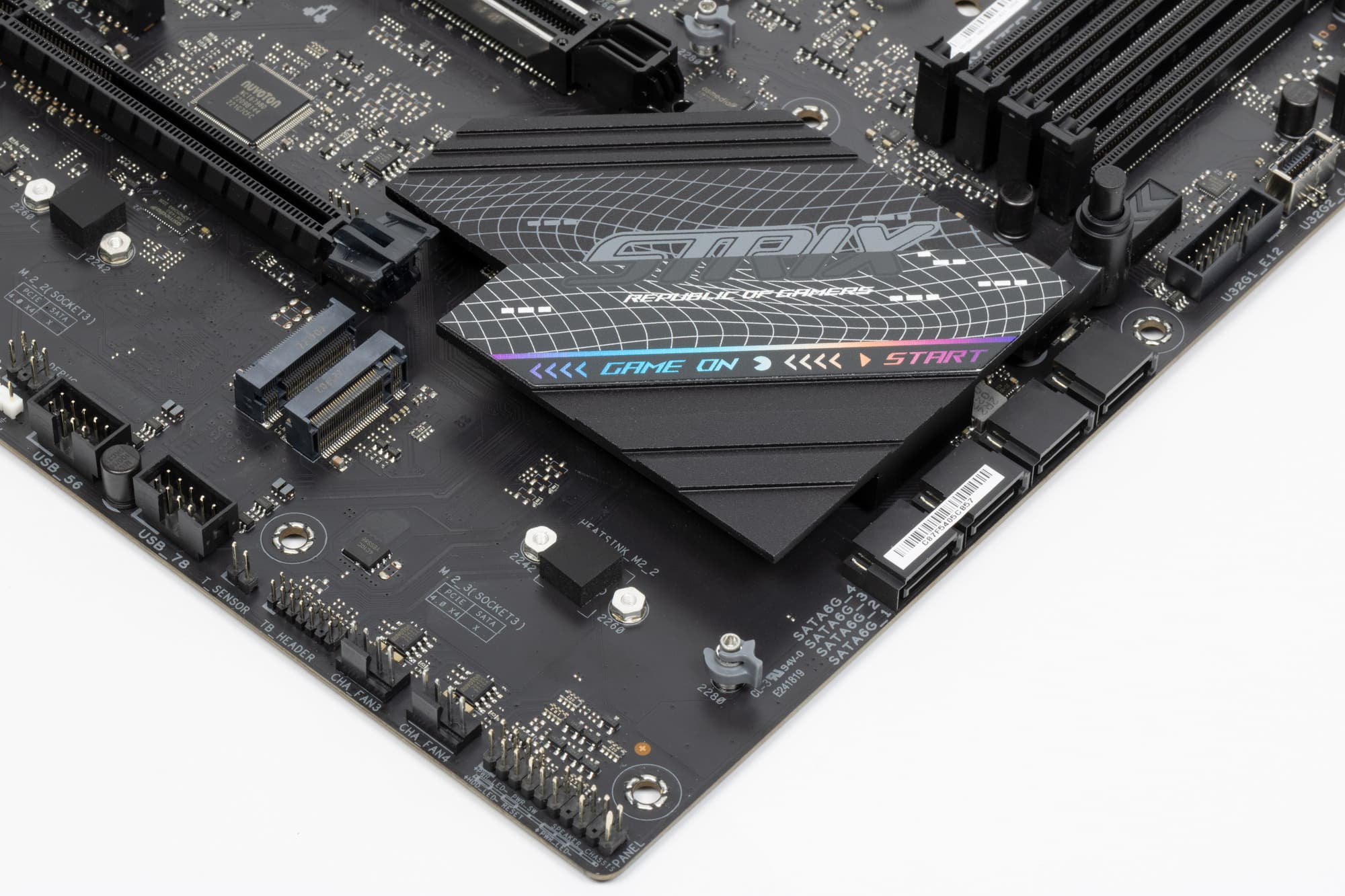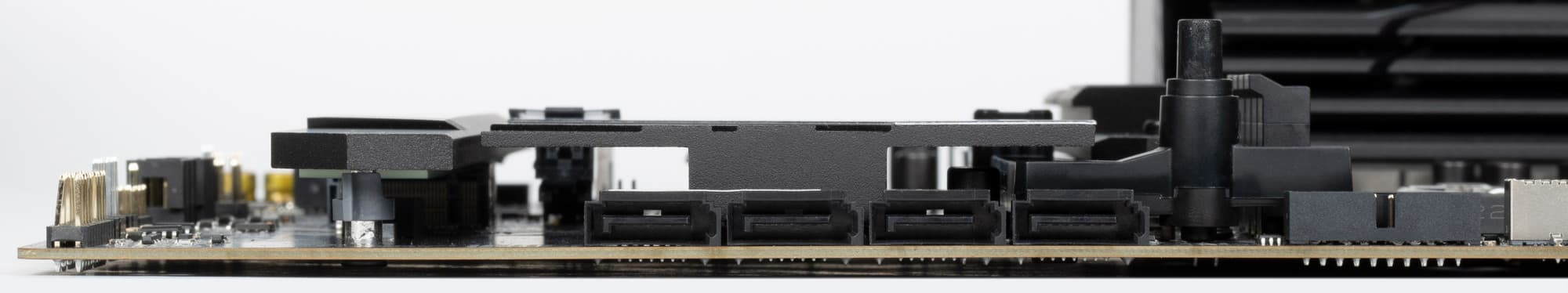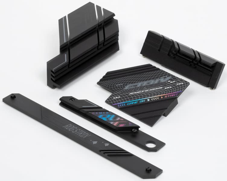 Все слоты М.2 оснащены радиаторами, при этом у M.2_1 – свой отдельный радиатор, а слоты М.2_2 и М.2_3 имеют общий радиатор. При этом системный чипсет охлаждается собственным радиатором, не объединенным с охлаждением для М.2 слотов.