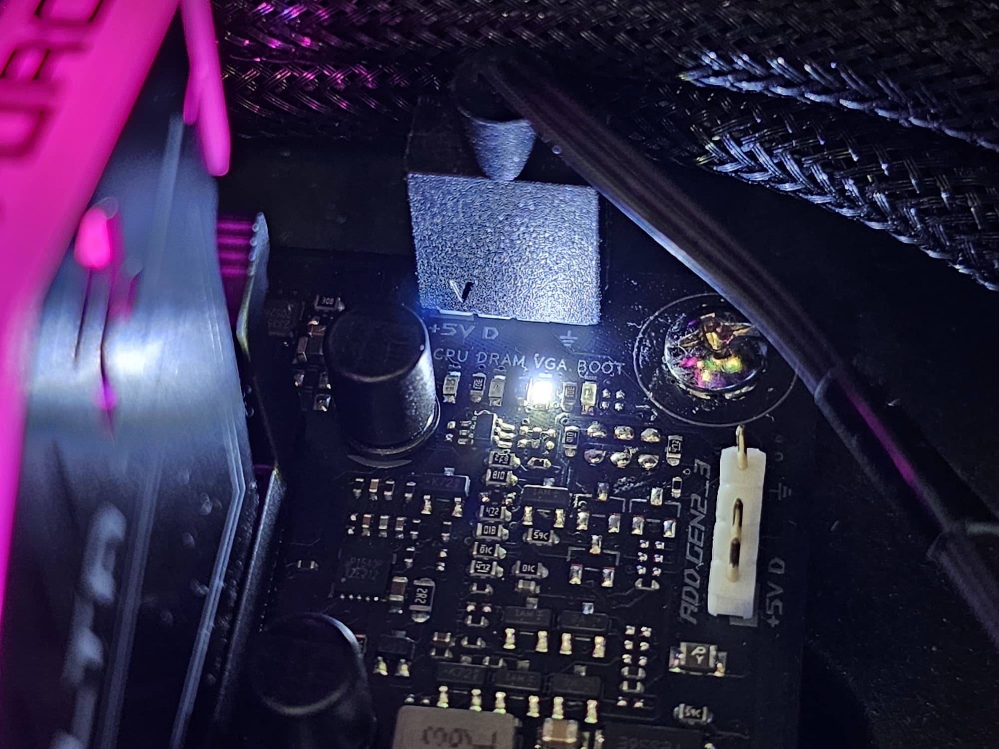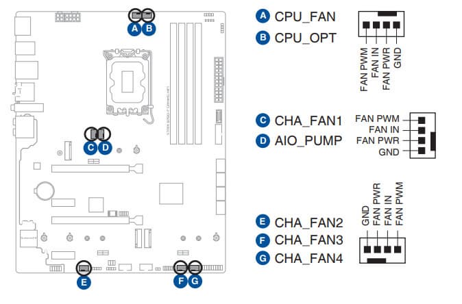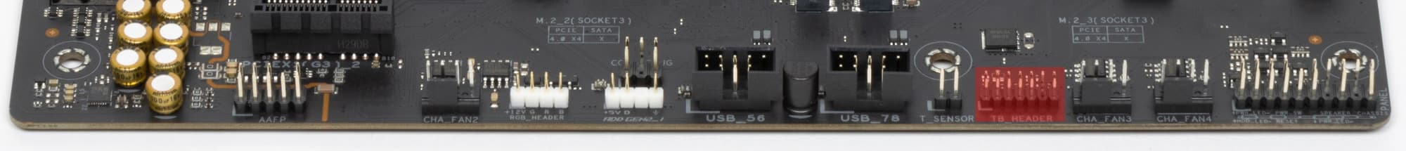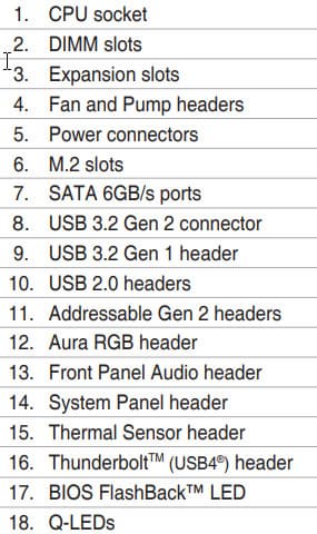 | Прочие внутренние элементы | 24-контактный разъем питания ATX 1 8-контактный разъем питания EPS12V 1 4-контактный разъем питания EPS12V 1 слот M.2 (E-key), занят адаптером беспроводных сетей 1 разъем для подключения порта USB 3.2 Gen2 Type-C 1 разъем для подключения 2 портов USB 3.2 Gen1 2 разъема для подключения 4 портов USB 2.0 7 разъемов для подключения 4-контактных вентиляторов и помп ЖСО 4 разъема для подключения адаптеров подсветки (1 разъем неадресуемой RGB-ленты, 3 разъема адресуемой ARGB-ленты) 2 разъема для подключения адаптера управления с передней панели корпуса 1 разъем для внешнего термодатчика 1 разъем для подключения дискретного Thunderbolt |