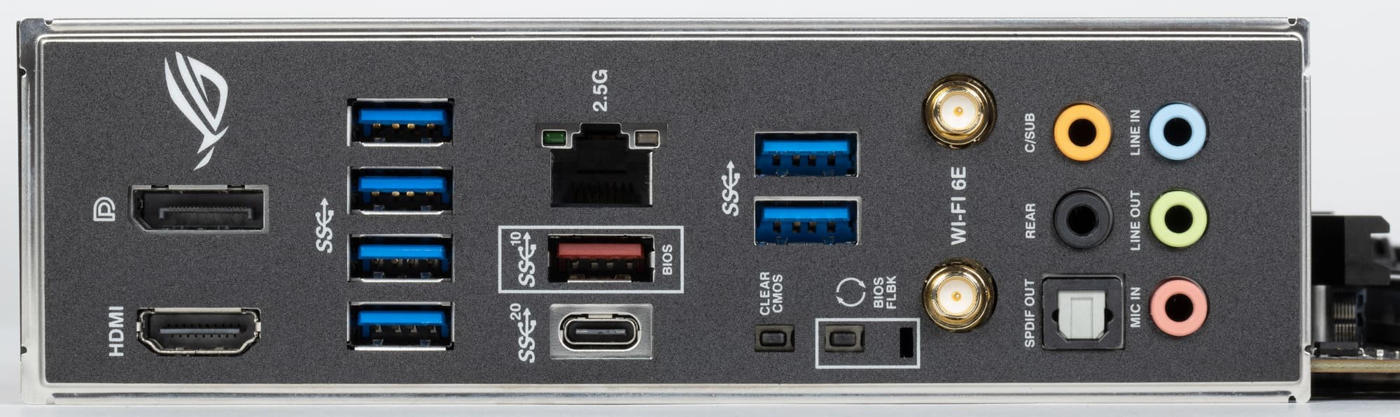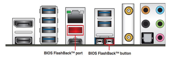 | Разъемы на задней панели | 1 × USB 3.2 Gen2x2 (Type-C) 1 × USB 3.2 Gen2 (Type-A) 6 × USB 3.2 Gen1 (Type-A) 1 оптический аудиоразъем S/PDIF 1 × RJ-45 5 аудиоразъемов типа миниджек 2 антенных разъема 1 разъем HDMI out 1 разъем Display Port out кнопка сброса CMOS кнопка перепрошивки BIOS — Flashback |
