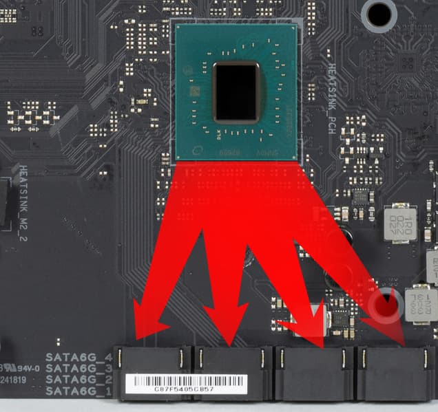 Также мы помним и про 14 линий PCIe (+ 4 SATA), которые идут на поддержку накопителей, сетевых и иных контроллеров (я выше уже показал на что и как расходуются 18 линий из 18).