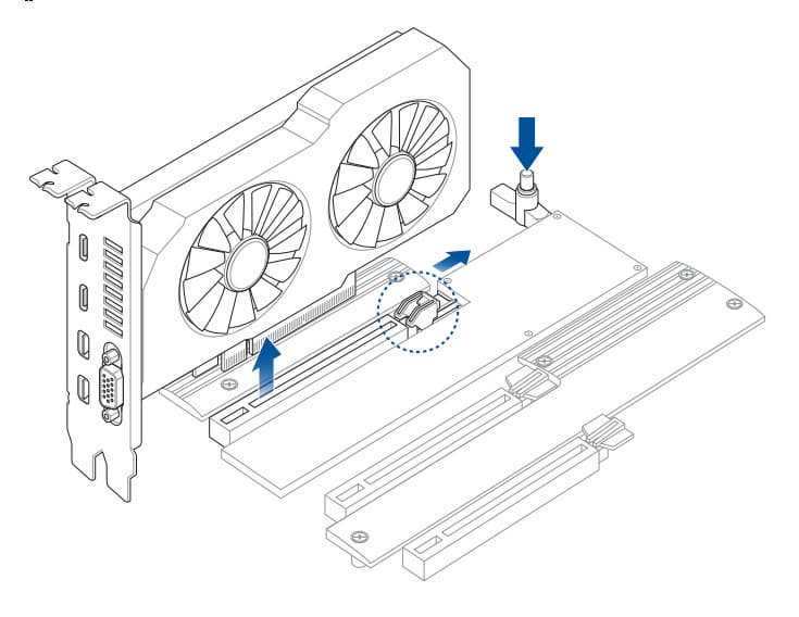 Для облегчения установки и снятия видеокарт в первый PCIe x16 слот используется технология Q-Release, когда открытие замка на конца слота происходит через рычаг путем нажатия особой кнопки, расположенной в удобном для сборщика ПК месте.