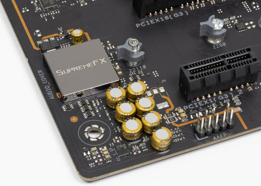 В данной плате звуком заведует современный аудиокодек от Realtek ALC4080. Он обеспечивает вывод звука по схемам до 7.1 с разрешением до 32 бит / 384 кГц. В стиле Asus – закрывать аудиокодек фирменным колпачком SupremeFX.