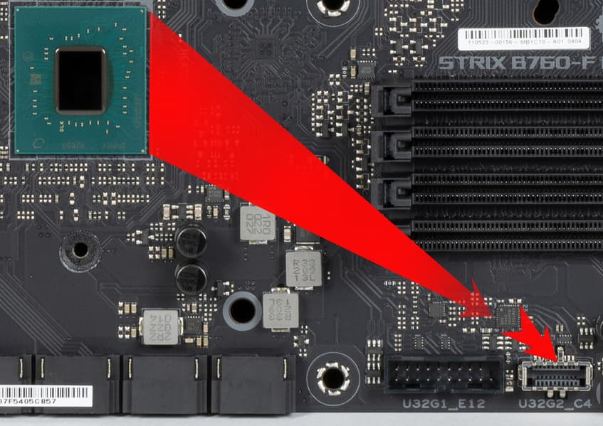 Повторим: чипсет B760 способен реализовать не более 12 портов USB, из которых может быть до 6 портов USB 3.2 Gen1, до 4 портов USB 3.2 Gen2, до 2 портов USB 3.2 Gen2x2, и/или до 12 портов USB 2.0.