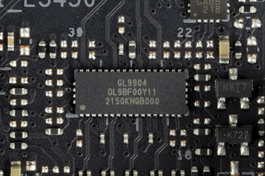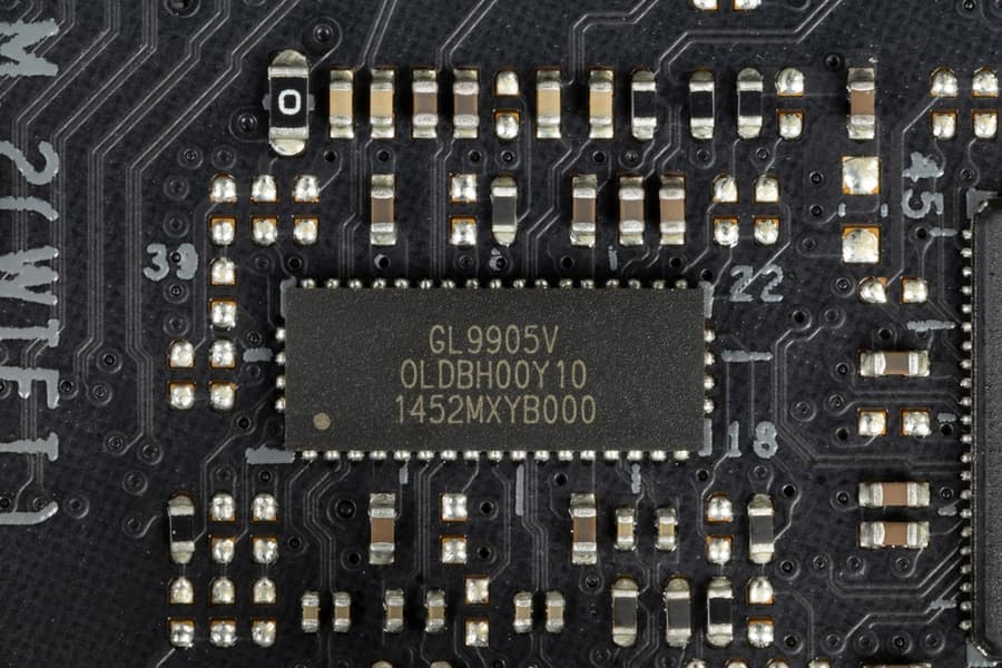 - 1 порт USB 3.2 Gen2x2: реализован с помощью двух контроллеров от Genesys Logic GL9905/9904 и представлен портом Type-C на задней панели;