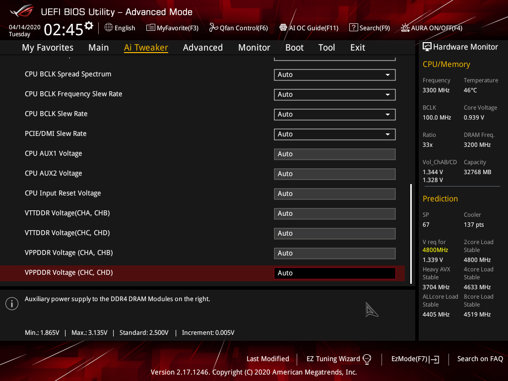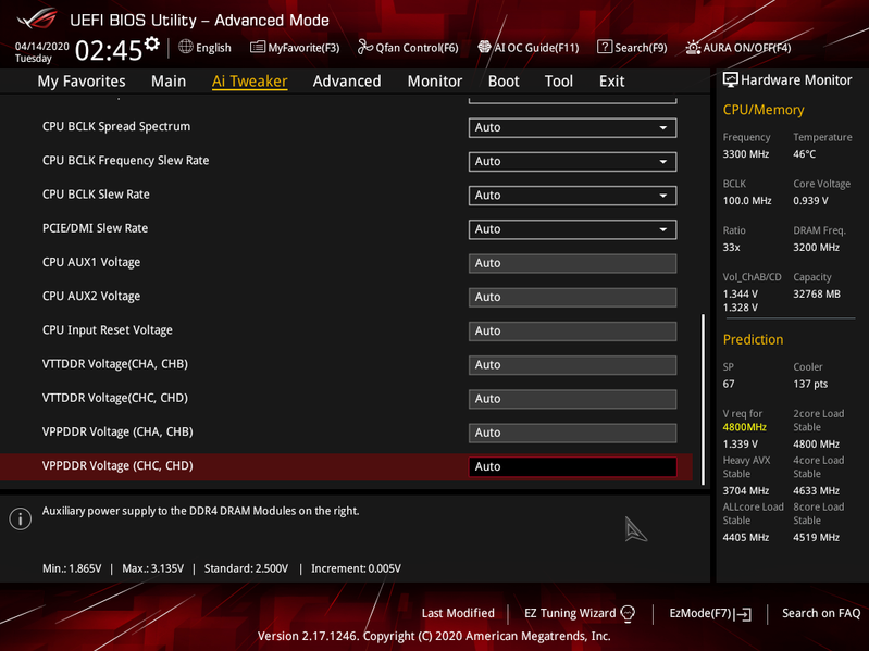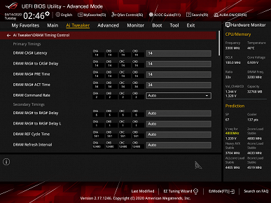 Для разгона есть по сути уже стандартные опции в рамках того, что поддерживают процессоры Core X и оперативная память DDR4. Помним про наличие внешнего тактового генератора, поэтому можно гибко менять и частоту базовой шины. Опций чрезмерно много, как и положено в ROG, правда для современных топовых процессоров наверно львиная доля — бесполезна, ибо процессор сам по себе уже работает на сильно повышенных частотах (с помощью Intel Turbo Boost). Впрочем, ROG — есть ROG, надо предоставить пользователю опции, а как уж он им распорядится — его дело: может быть на Чукотке в чуме при -20С комп будет стоять :))