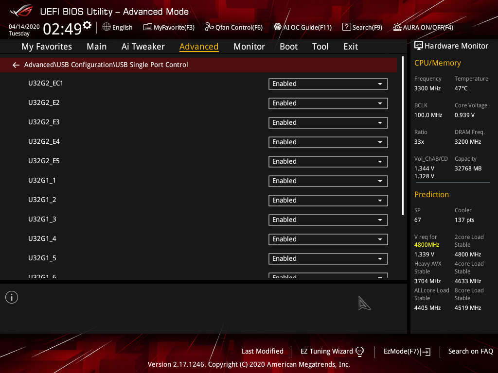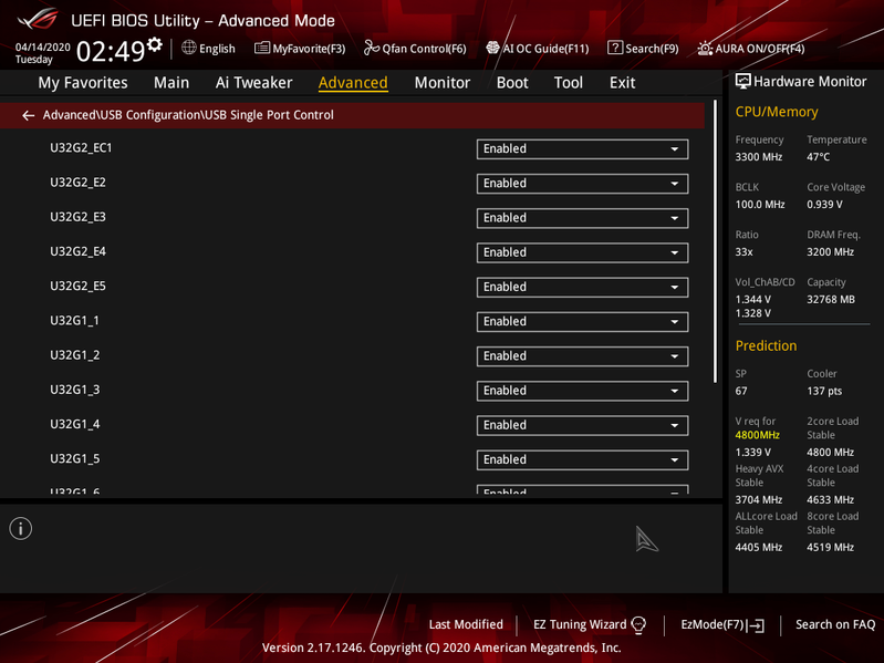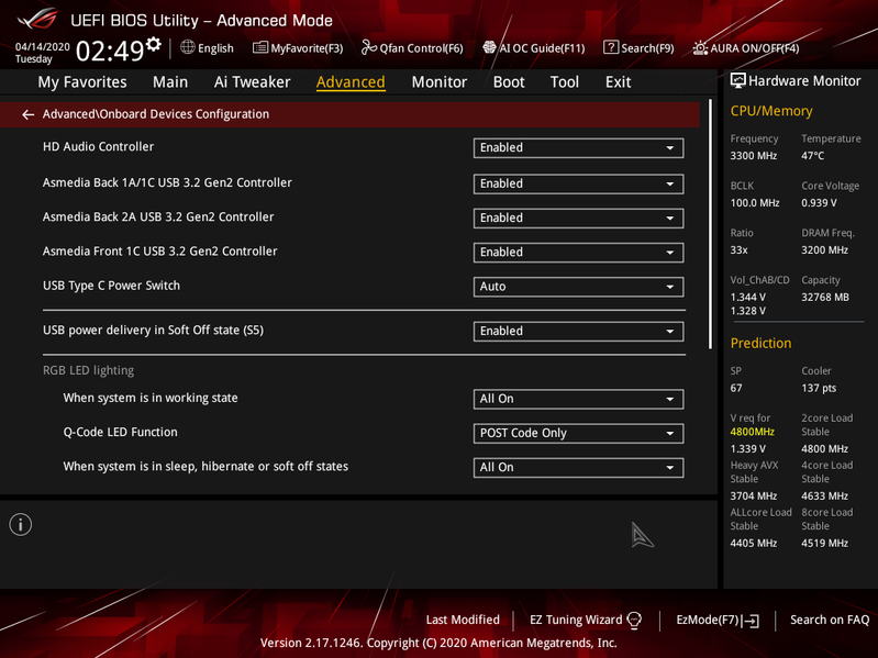 Управление периферией. Имеется много интересных позиций, когда каждым портом USB можно управлять. Как и менять режимы работы слотов PCIe и M.2. И не забываем, что порт USB 3.2 Gen2 Type-C (тот, что внутри материнки в виде странного разъема, для которого в корпусах до сих нет соответствующего кабеля) «сидит» на одной и той же линии PCIe со слотом PCIe x1, поэтому в BIOS можем выбрать — что включить, а что выключить. Заодно там же есть скрытая функция получения цифрового пропуска на перемещение в Москве (после снятия карантина будет обновление BIOS, и функция пропадет).