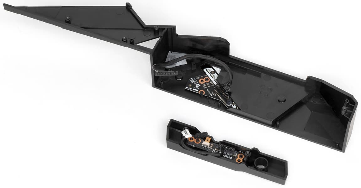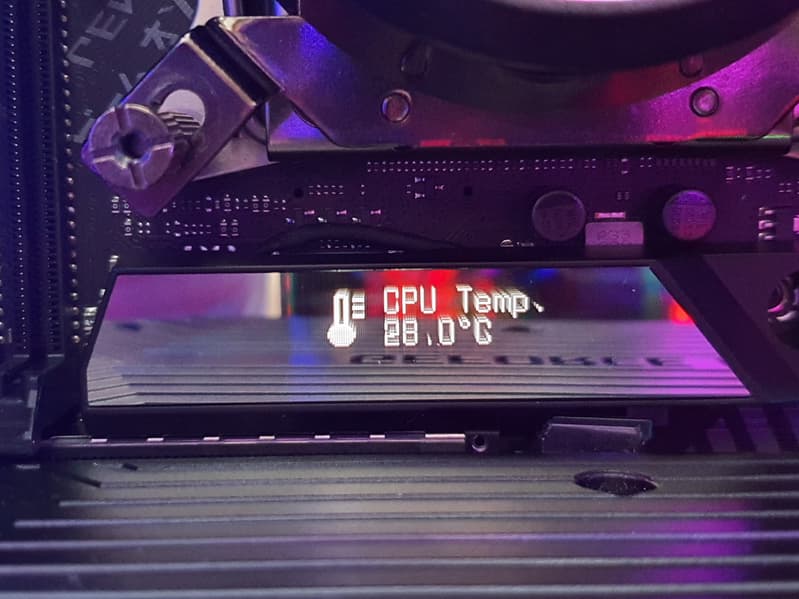На него можно вывести как показатели состояния платы (мониторинг), так и встроенный набор логотипов и роликов, а также свои эксклюзивные визуализации (управляет всем программа Armoury Crate, поэтому детали будут ниже при ее рассмотрении).