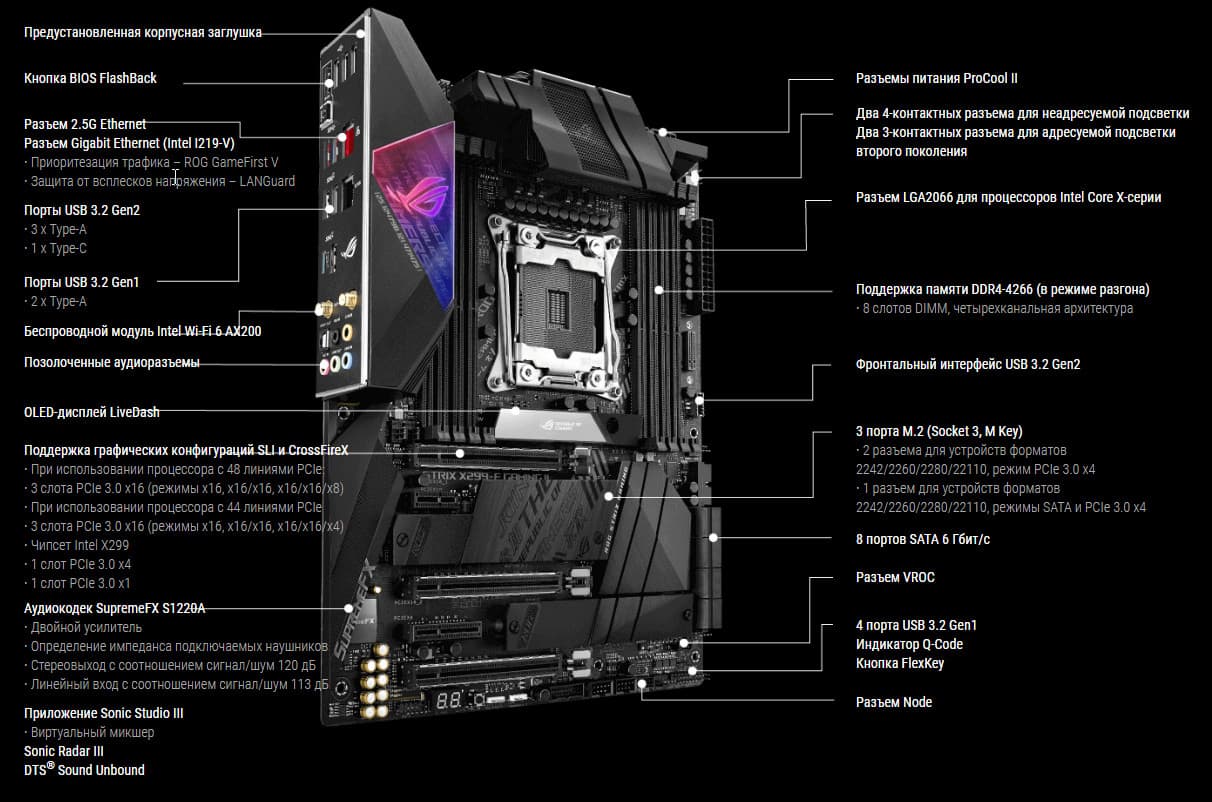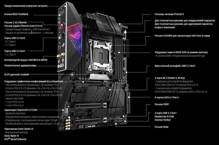 | Поддерживаемые процессоры | Intel Core X 7-го, 9-го и 10-го поколений |