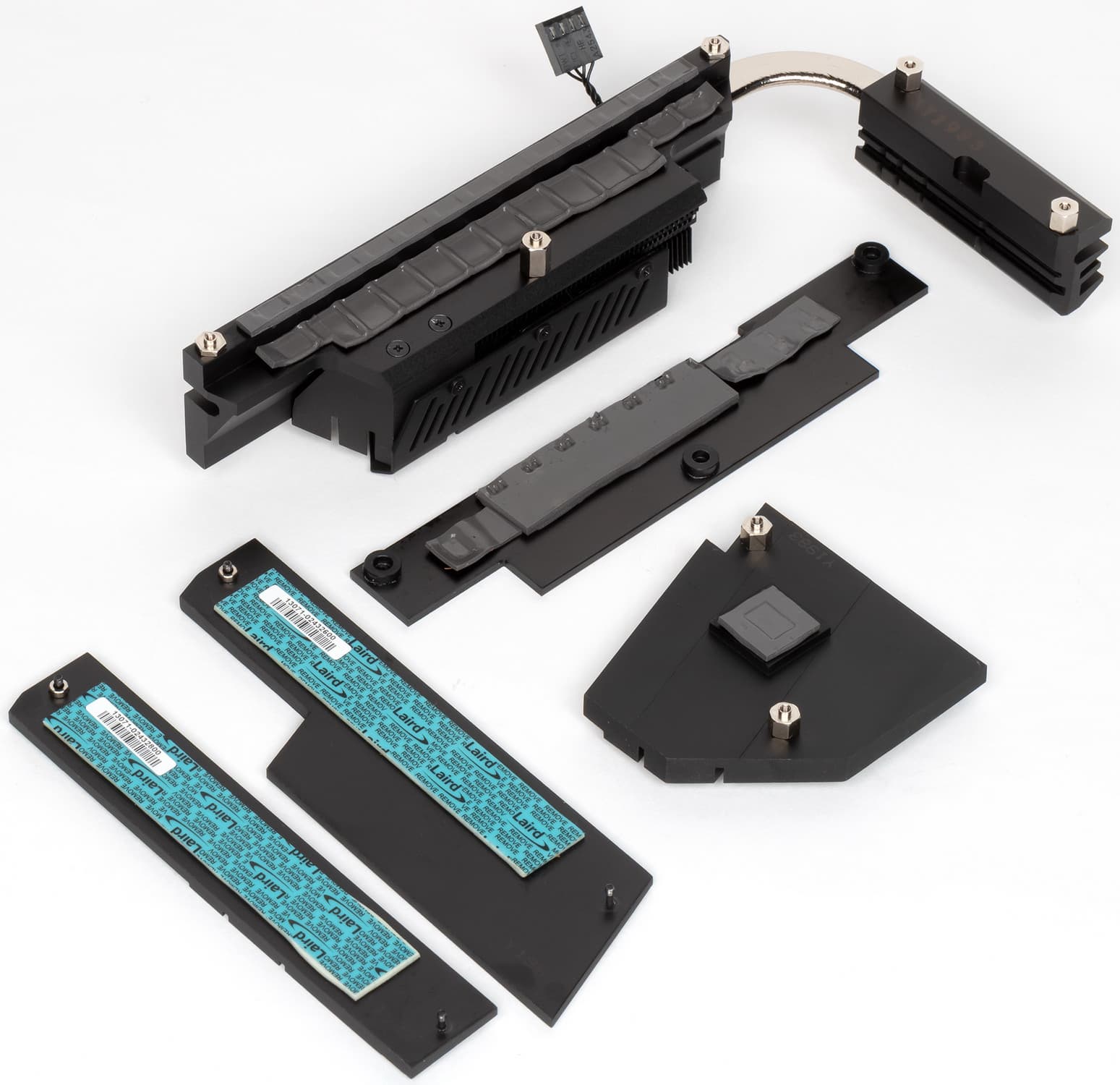 Для двух модулей M.2 (2_3 и 2_2), как я уже выше отмечал, есть свои радиаторы с термоинтерфейсами. Они крепятся самостоятельно и не принимают участие в общей схеме охлаждения.