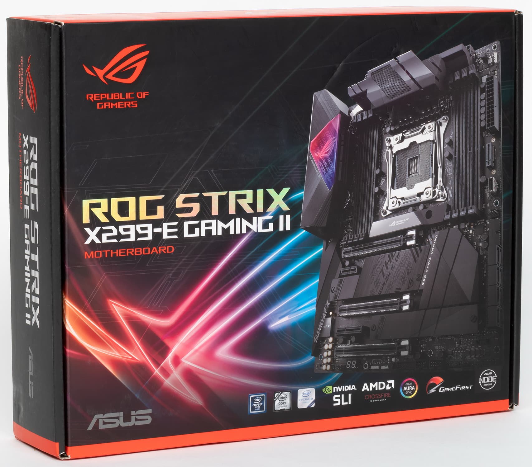ROG Strix X299-E Gaming II поставляется в стандартном коробке с фирменным дизайном ROG.