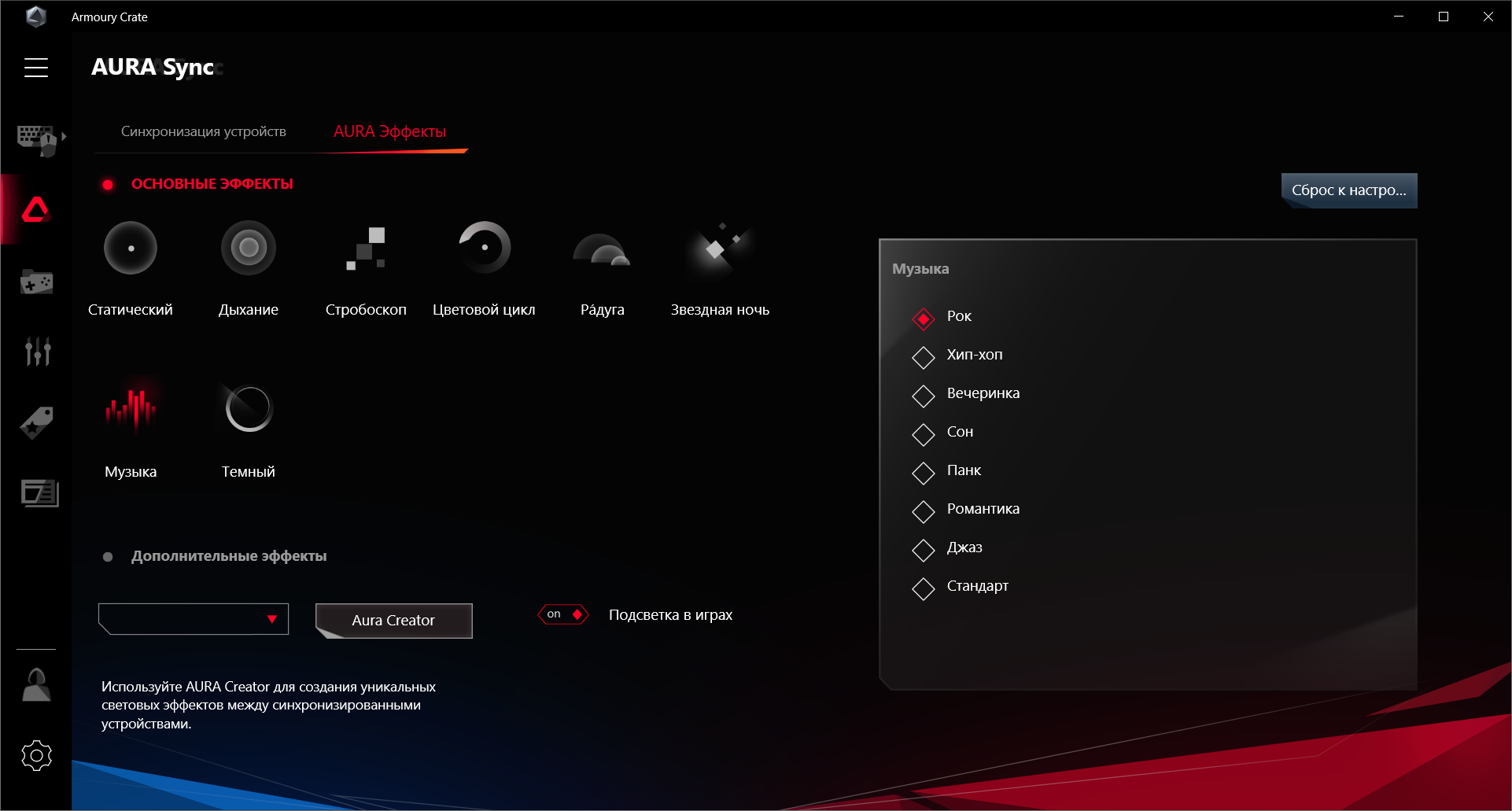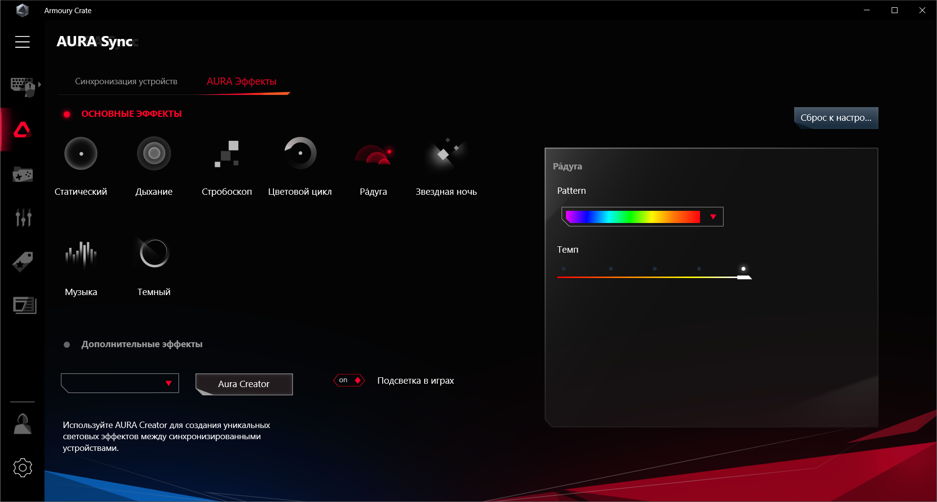 Также можно загрузить Aura Creator и с его помощью создать свои сценарии работы подсветки.