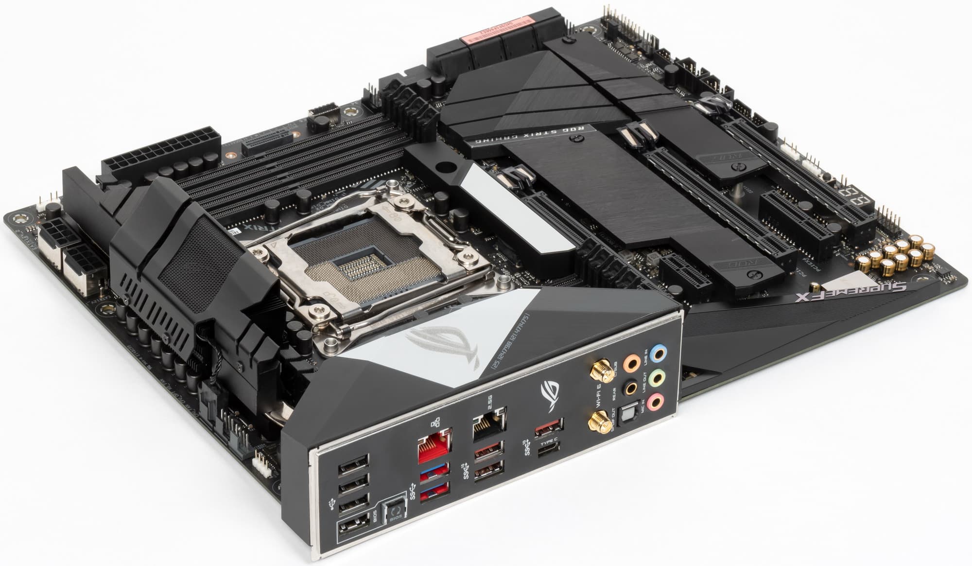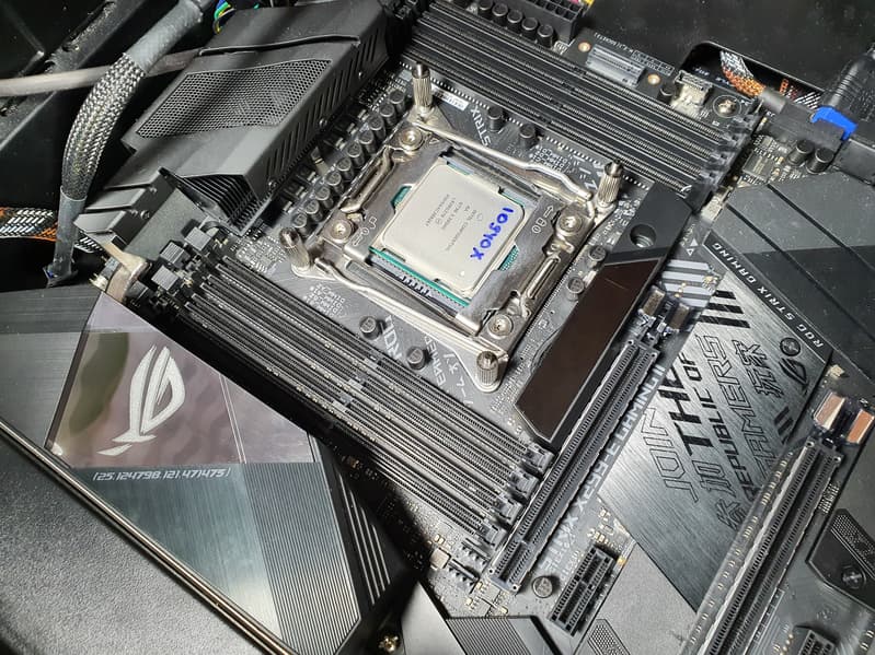 Еще раз надо напомнить, что ROG Strix X299-E Gaming II поддерживает процессоры Intel Core X 7-го, 9-го и 10-го поколений (SkyLake-X, CascadeLake-X), устанавливаемые в сокет LGA 2066.