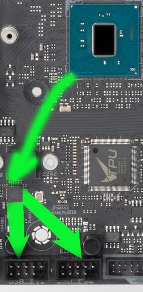 - Переключатель: если CPU с 48 линиями PCIe, то слот PCIe x16_3 получает 8 линий; в противном случае (CPU с 44 или 28 линиями PCIe) — получает 4 линии (i9-10xxxX +8=40, i9/i7-9xxxX/79xxX +4=36, i7-78xxX +4=28);