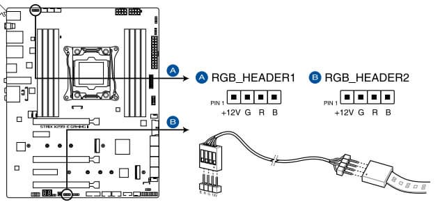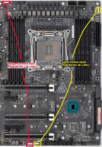 Схемы подключения стандартны для всех материнских плат, поддерживающих подсветку: