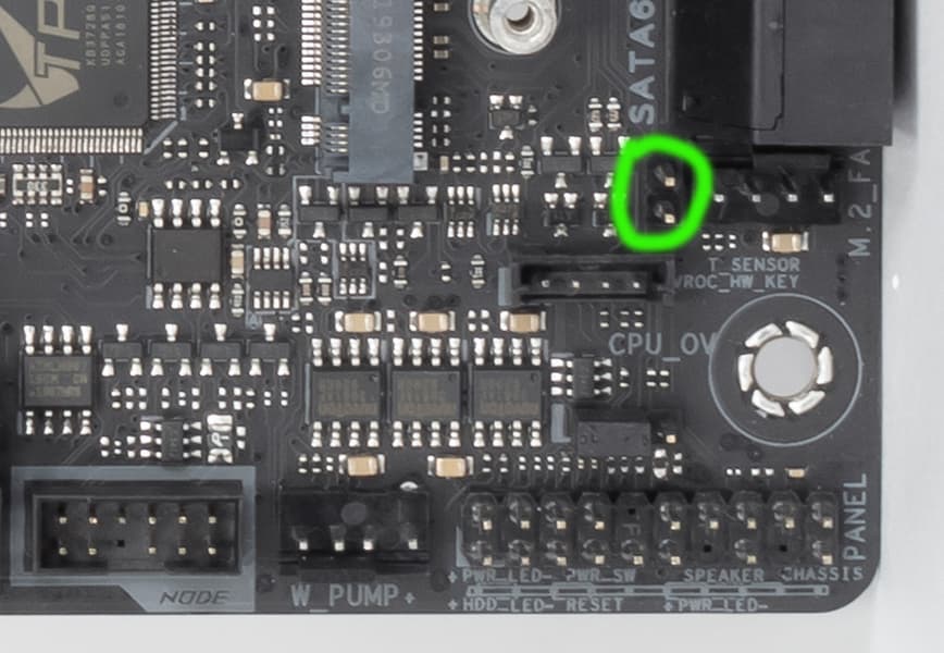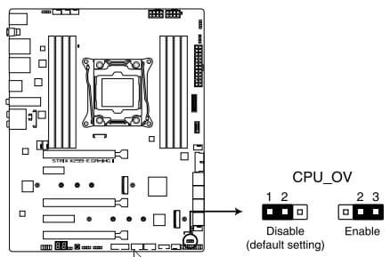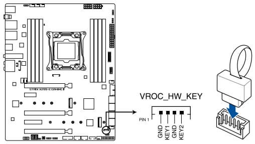 По сути это единственный атрибут на плате, говорящий о том, что плата поддерживает оверклокинг: перемычка, убирающая лимит по повышению вольтажа, установленный по умолчанию в BIOS. Хотя, как мне кажется, экспериментировать с разгоном в сегменте HEDT — это огромный риск, если помнить стоимость «железа».