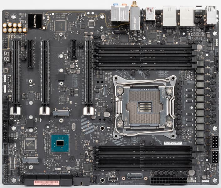 Выше мы изучили потенциальные возможности тандема X299+Core X, а теперь посмотрим, что из этого и как реализовано в данной материнской плате.