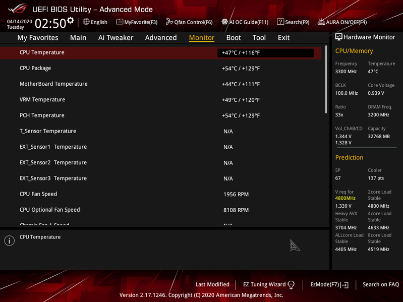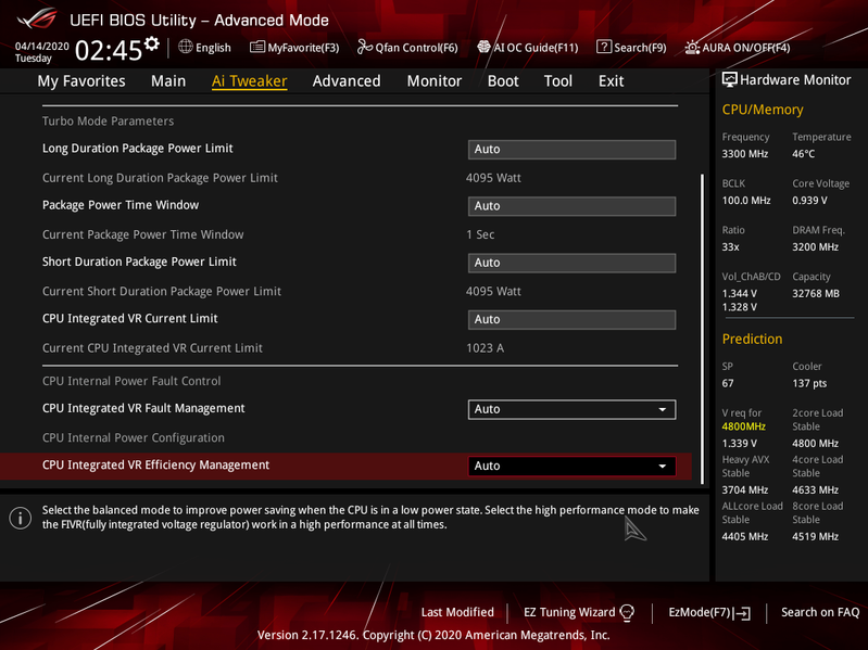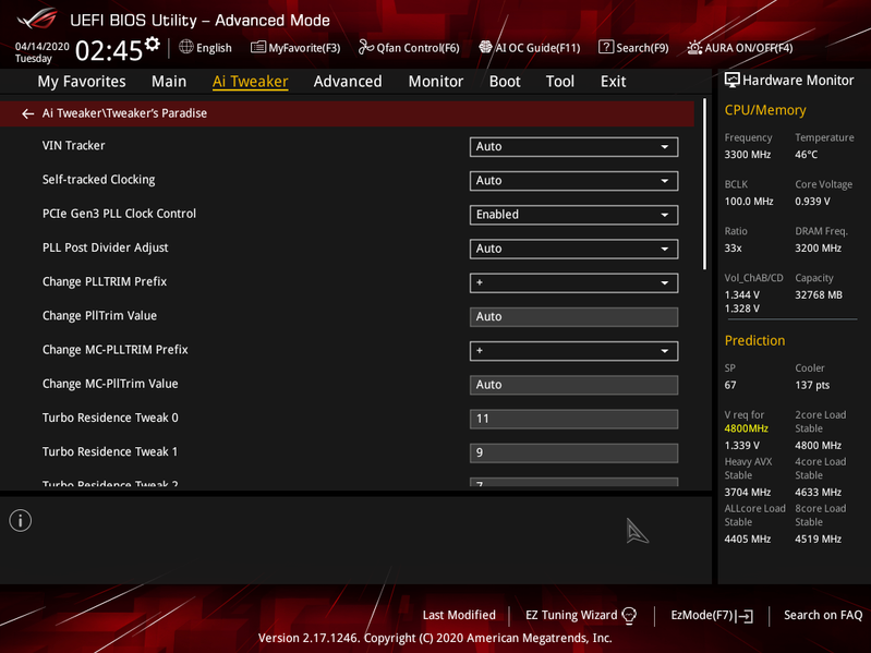 ВО! 4,4 ГГц по всем ядрам! Круто! При этом максимальный нагрев остался тем же — 86 °C, энергопотребление выросло до 222 Вт (максимум). Термо-шумовые параметры VRM/PCH остались теми же, не выше 60 °C. В общем, пришлось убрать AI Optimized, затем тупо вручную через AI-Suite выставить те самые 4,4 ГГц по всем ядрам, через настройки TPU задать экстремальный режим схемы питания, и оно заработало. Все тесты прошли на «ура», под полной нагрузкой система работала 2 часа (Мосэнергосбыт радостно потирает ручки). Стабильность в порядке. Увы, но в данном случае «интеллигентный» авторазгон годен лишь для собственных бенчмарков.