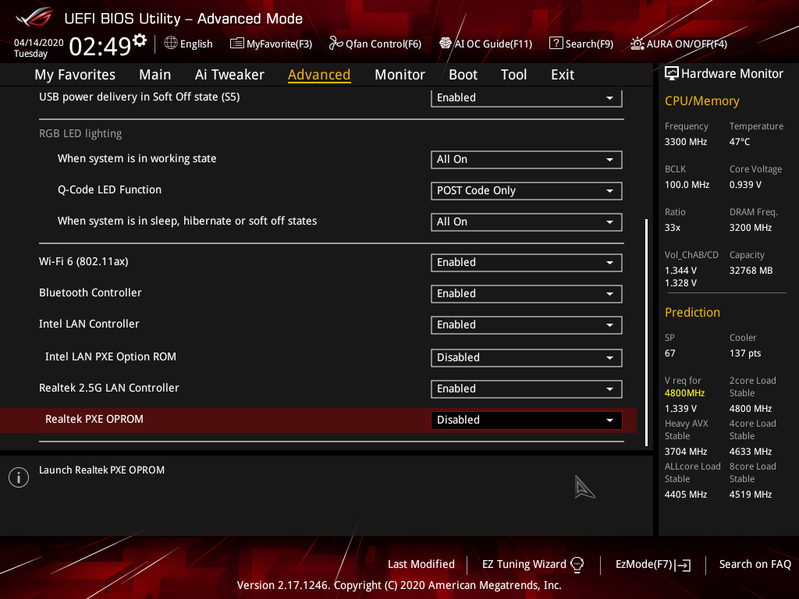 | Сетевые контроллеры | 1 × Intel WGI219-AT Ethernet 1 Гбит/с 1 × Realtek RTL8125AG (Ethernet 2,5 Гбит/с) 1 × Intel Dual Band Wireless AX200NGW/CNVi (Wi-Fi 802.11a/b/g/n/ac/ax (2,4/5 ГГц) + Bluetooth 5.0) |