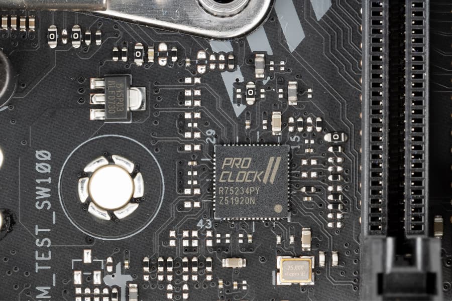 Для поддержания стабильных частот на шине PCIe (и для нужд оверклокеров) имеется внешний тактовый генератор.