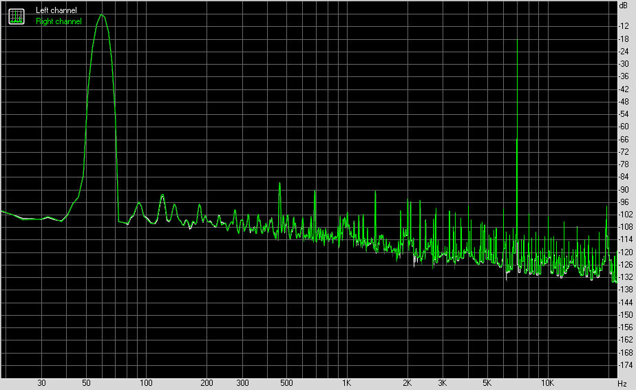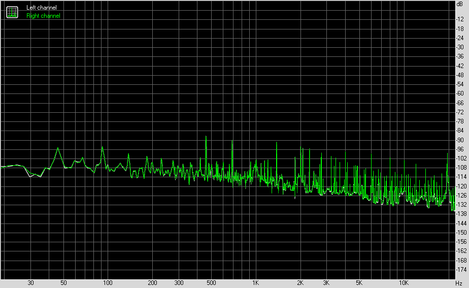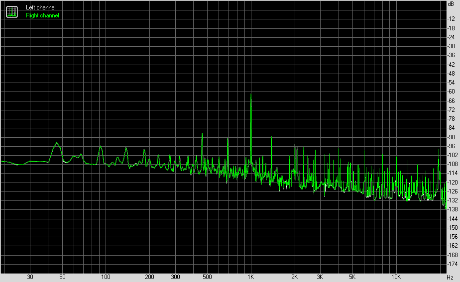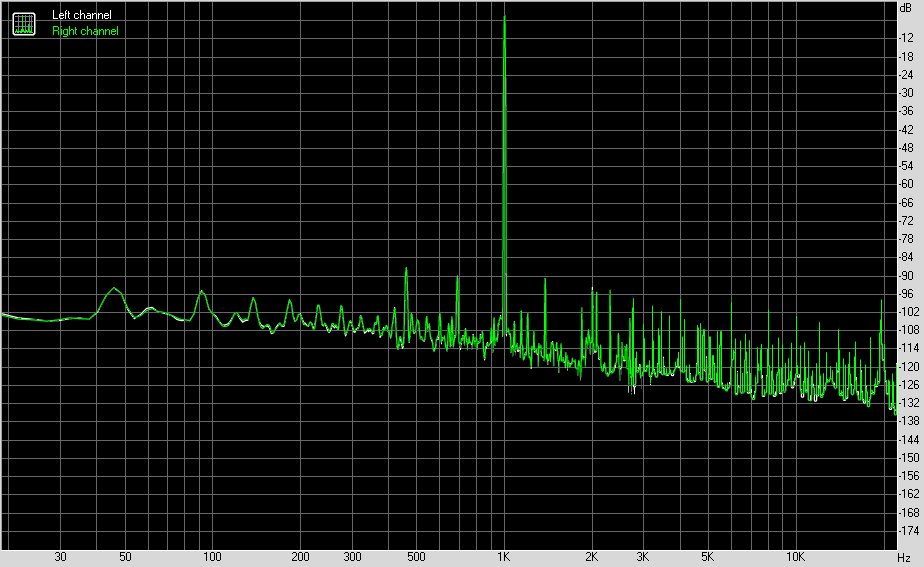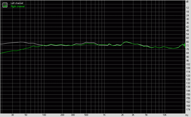 Для тестирования выходного звукового тракта, предназначенного для подключения наушников или внешней акустики, мы использовали внешнюю звуковую карту Creative E-MU 0202 USB в сочетании с утилитой RightMark Audio Analyzer 6.4.5. Тестирование проводилось для режима стерео, 24-бит/44,1 кГц. Во время тестирования ИБП тестового ПК физически отключался от электросети и работал на аккумуляторе.