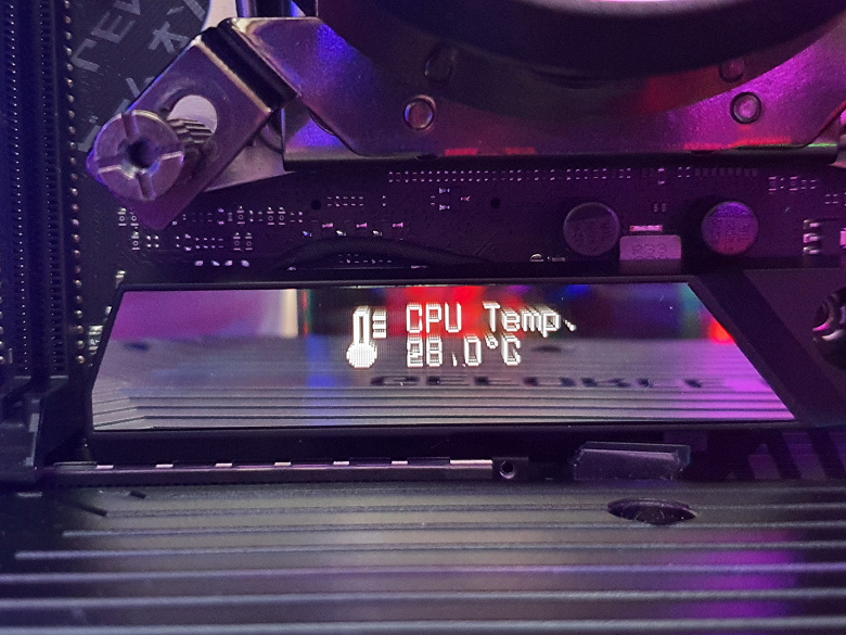 Заканчивая с визуальными украшательствами в данном разделе (мы еще вернемся к ним), следует особо отметить наличие OLED экранчика между процессорным сокетом и первым слотом PCIe (см.видеоролик).