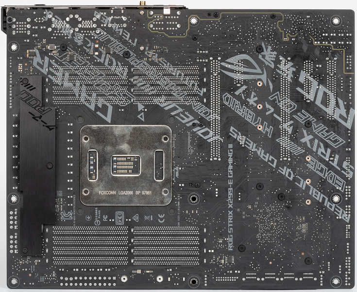 Собственно вот. Перед нами ROG Strix X299-E Gaming II. Римская цифра 2 в конце означает не ревизию, а новую версию ранее выпущенных Strix X299-E и Strix X299-XE вариантов геймерских плат на базе Intel X299.