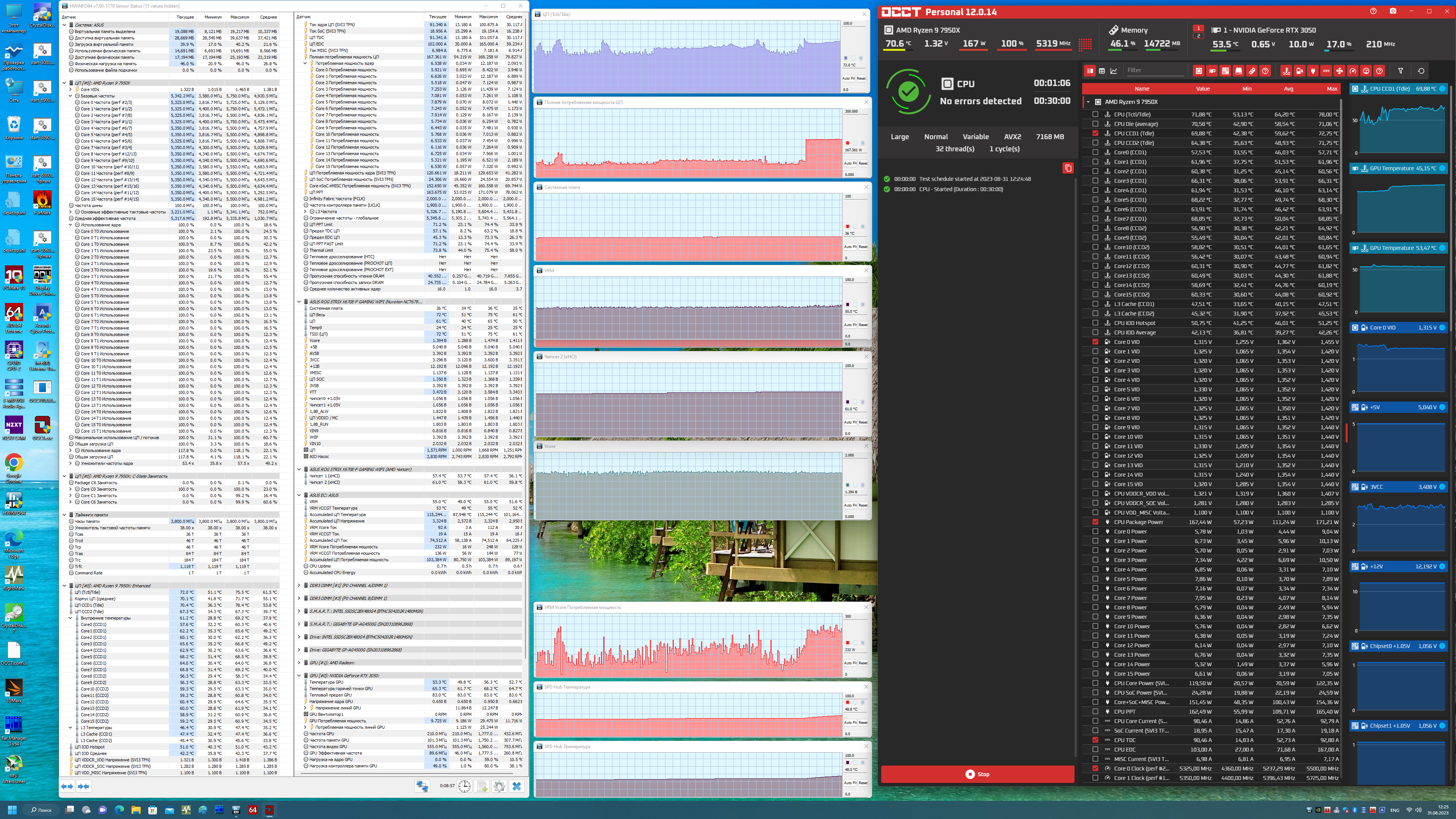 С учетом колоссальной нагрузке на процессор (его нагрев выше 84 градусов, а также потребление выше 200 Вт сами говорят за себя), так как я выбрал самый тяжелейший тест в OCCT, все испытания прошли успешно, и мы не получили никаких нареканий на работу сопутствующих блоков, никаких перегревов или странных явлений не было.