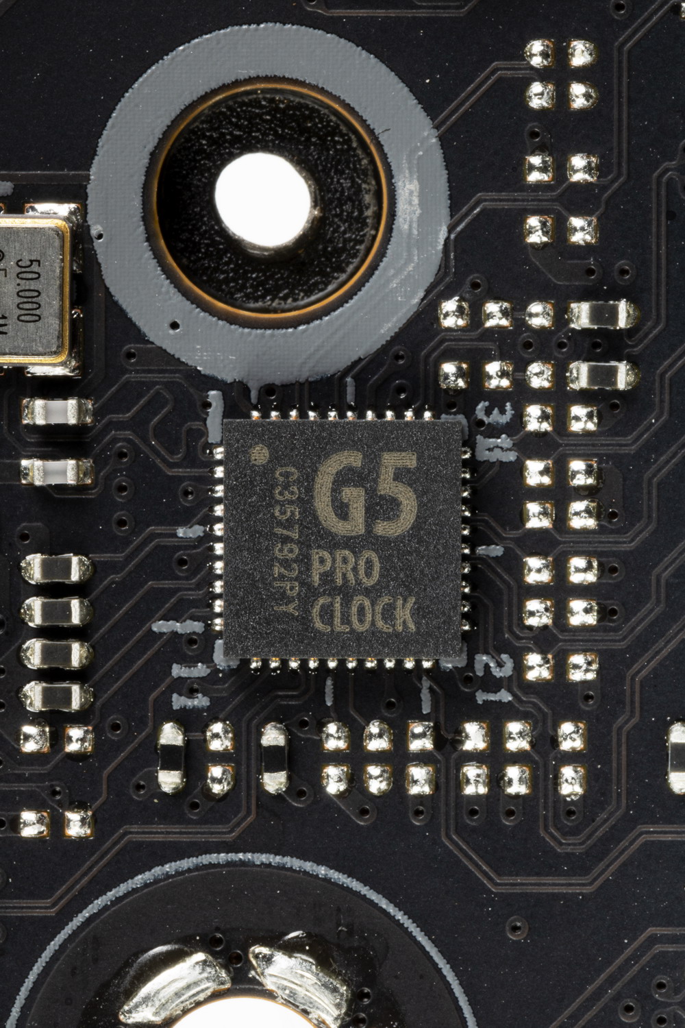 Для поддержания стабильных частот на шине PCIe (и для нужд оверклокеров) имеется внешний тактовый генератор.