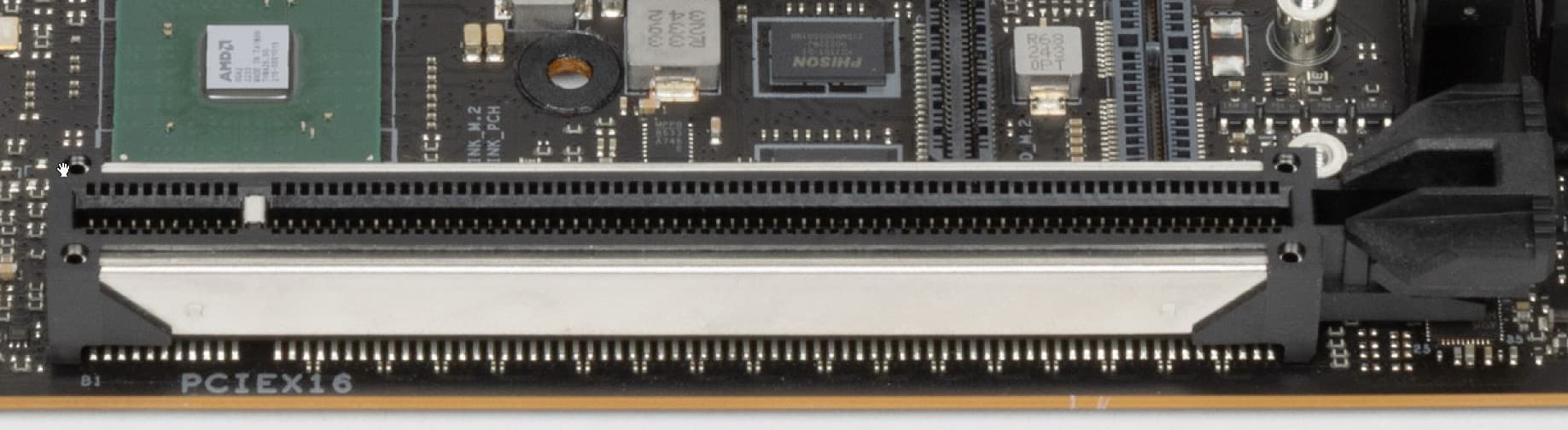 Слот PCIe x16 имеет металлическое армирование из нержавеющей стали, которое увеличивает надежность.