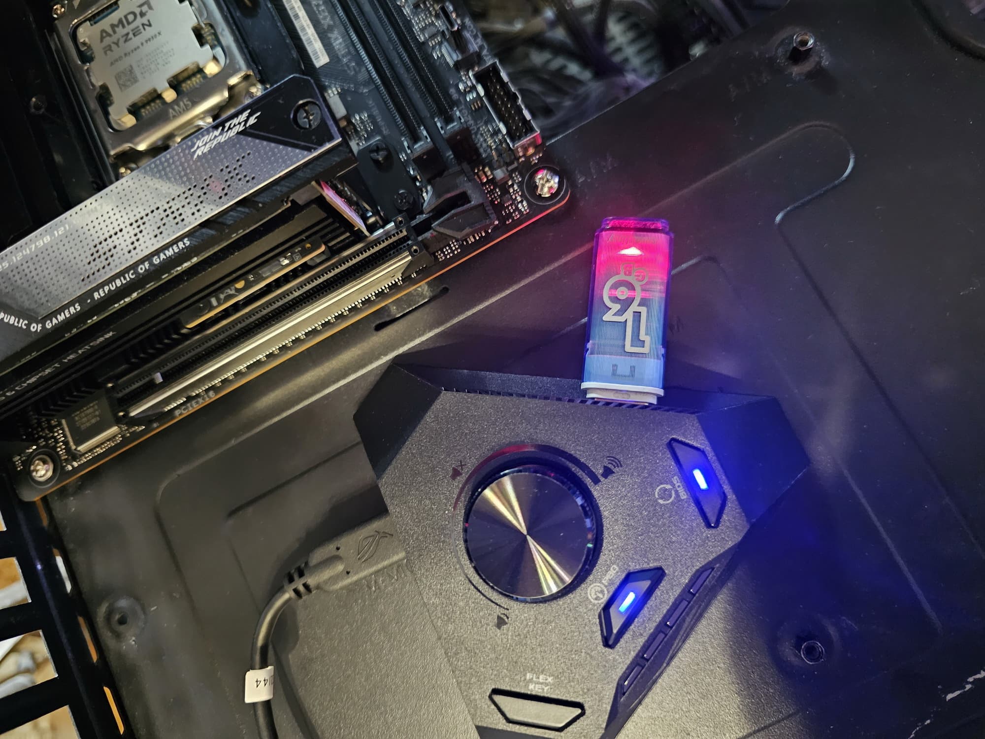 ROG Strix Hive имеет магниты в основании, поэтому его можно легко установить на любой металлической поверхности, например, на боковой стороне системного блока.