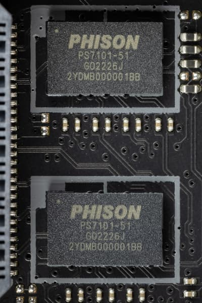 Плата оснащена усилителями (ре-драйверами) сигнала PCIe 5.0 от Phison.