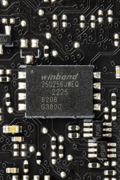 Материнская плата оснащена средствами связи хорошо. Имеется скоростной Ethernet-контроллер Intel I225-V, способный работать по стандарту 2,5 Гбит/с.