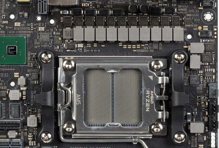 Плата Asus поддерживает процессоры AMD поколений 7000/8000/9000, выполненные под разъем (сокет) AM5.