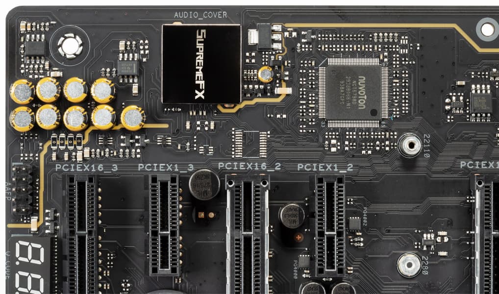 | Аудиоподсистема | 1 × Realtek ALC1220 (перемаркирован в SupremeFX) (7.1) + операционные усилители R4580I и OPA1688 от Texas Instruments |