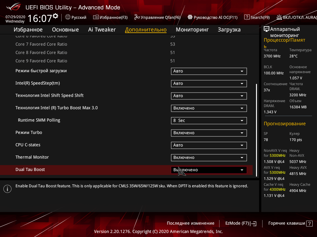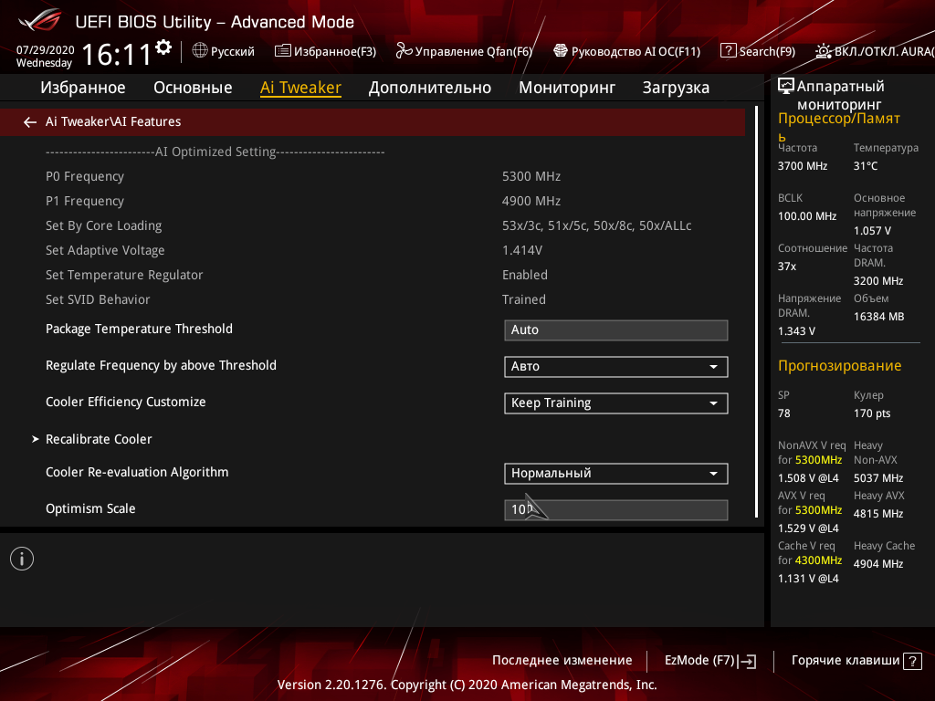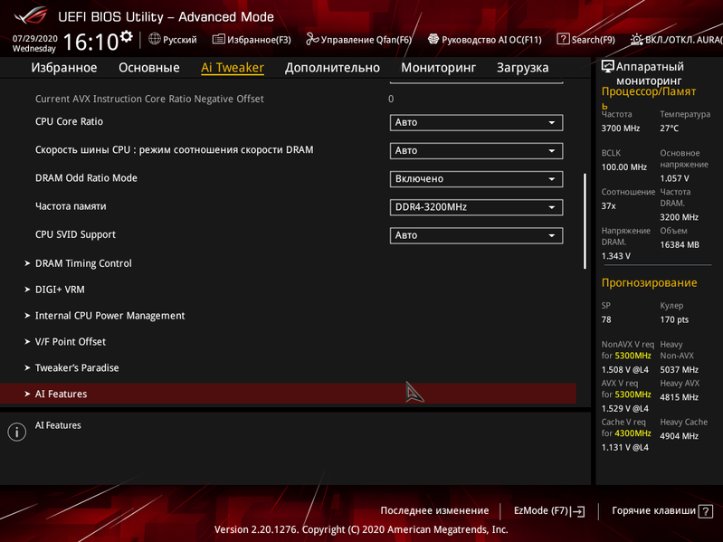 Включаем режим AI-Optimized (фирменный режим интеллектуального разгона в BIOS), получаем прибавку в 200 МГц, то есть 5,1 ГГц.
