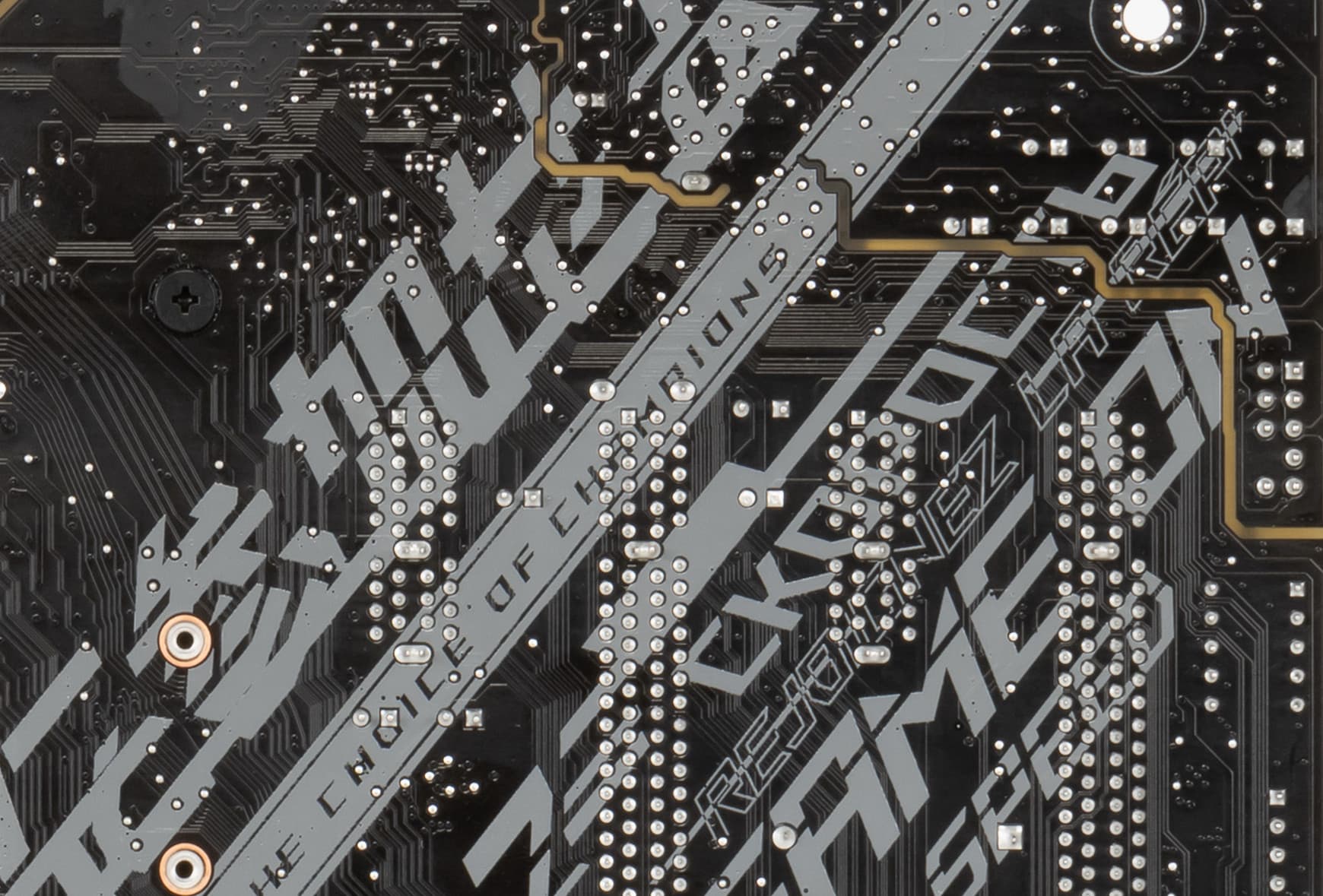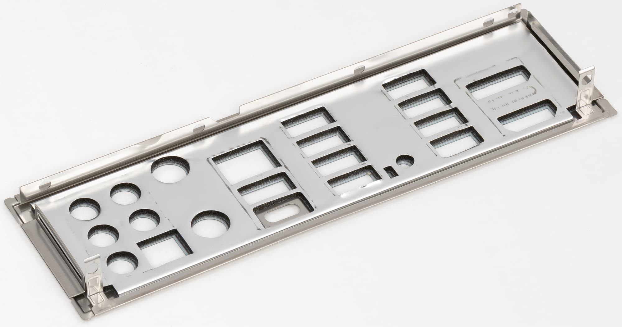 Слоты DIMM не имеют металлической окантовки, которая препятствует деформации слотов и печатной платы при установке модулей памяти и защищает от электромагнитных помех, и которая обычно всегда является составной частью именно флагманского набора у материнских плат, но при этом усилена пайка для стабильной передачи электросигнала.