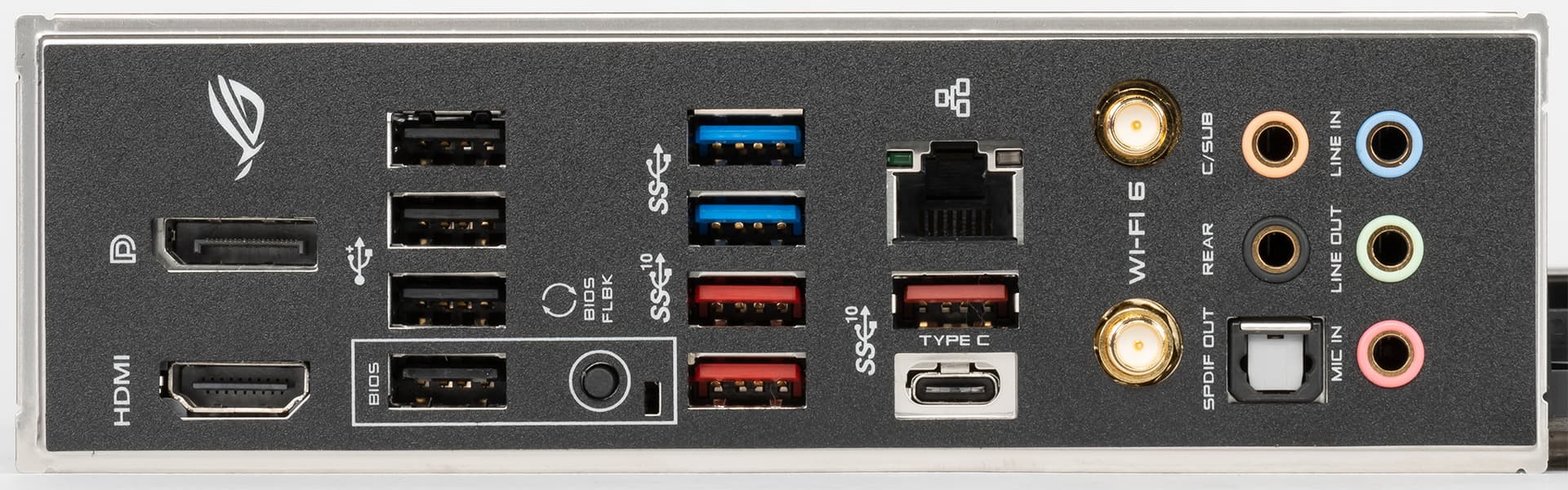 | Разъемы на задней панели | 1 × USB 3.2 Gen2 (Type-C) 3 × USB 3.2 Gen2 (Type-A) 2 × USB 3.2 Gen1 (Type-A) 4 × USB 2.0 (Type-A) 1 × RJ-45 5 аудиоразъемов типа миниджек 1 × S/PDIF (оптический, выход) 2 антенных разъема 1 × HDMI 2.0 1 × DP 1.2 кнопка перепрошивки BIOS — Flashback |