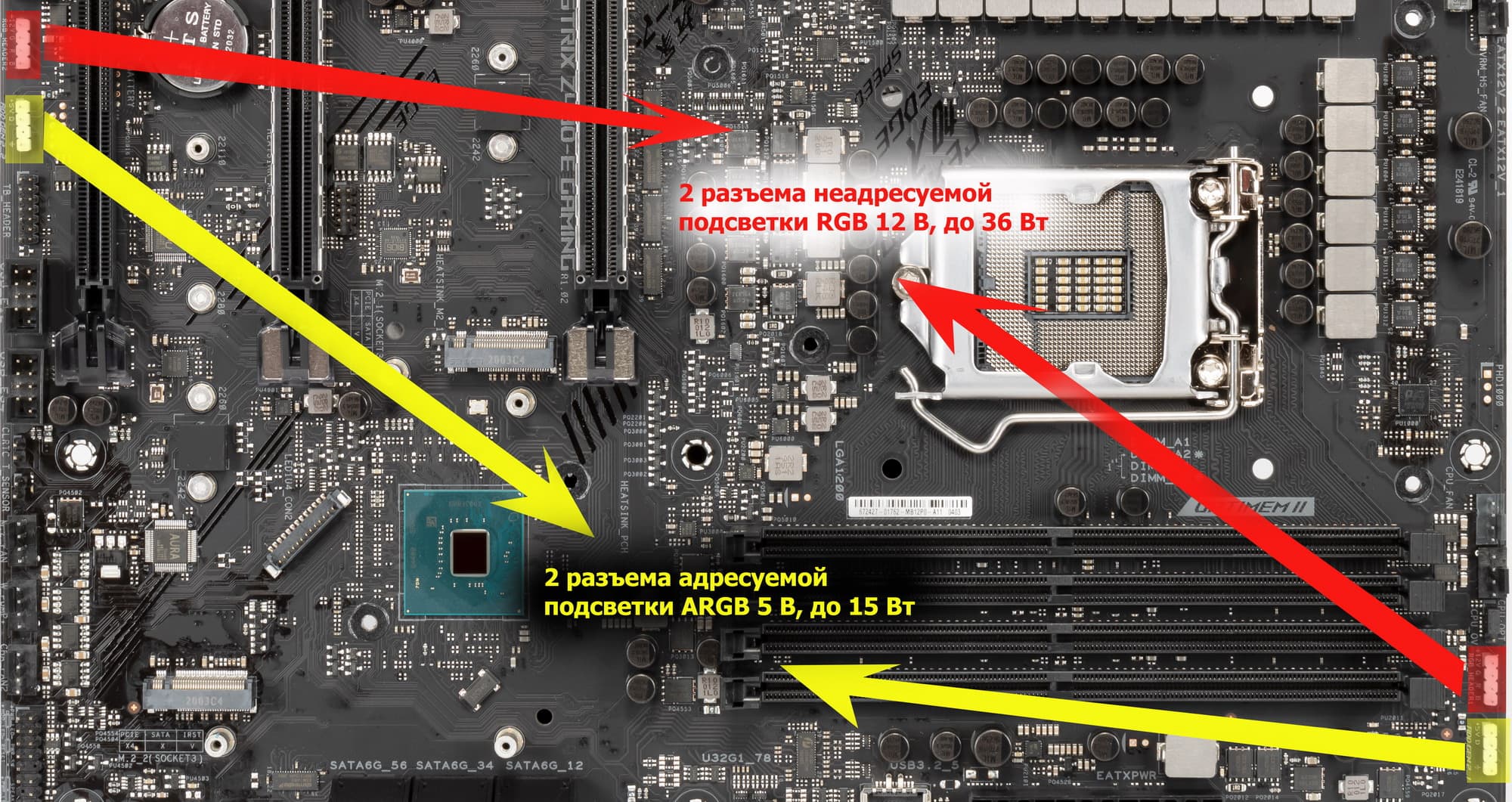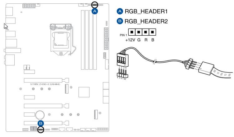 Схемы подключения стандартны для всех материнских плат, поддерживающих подсветку:
