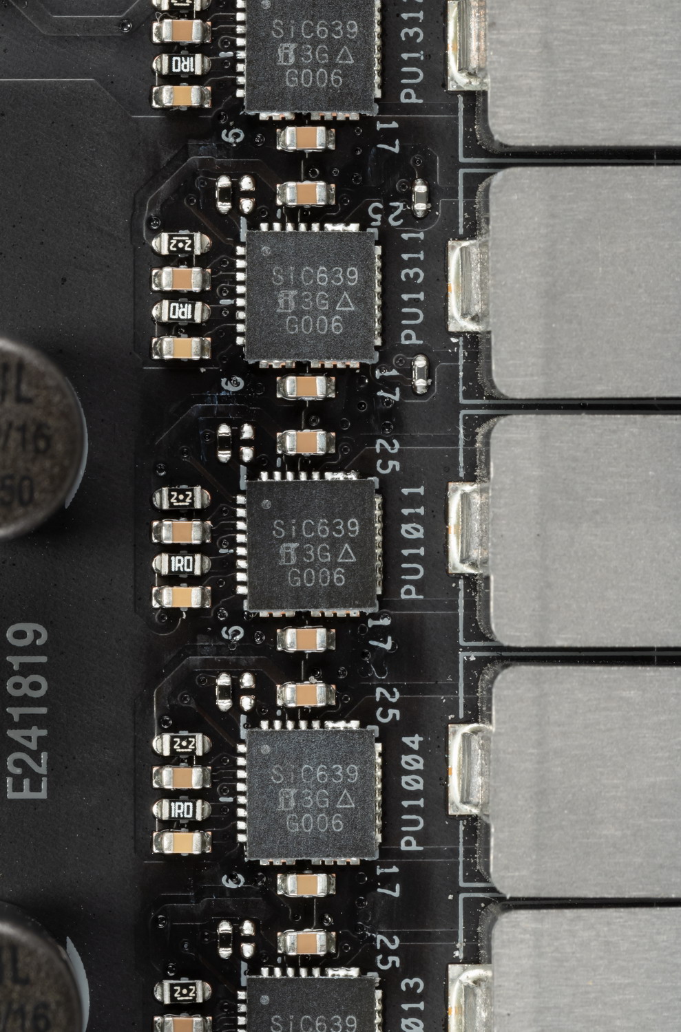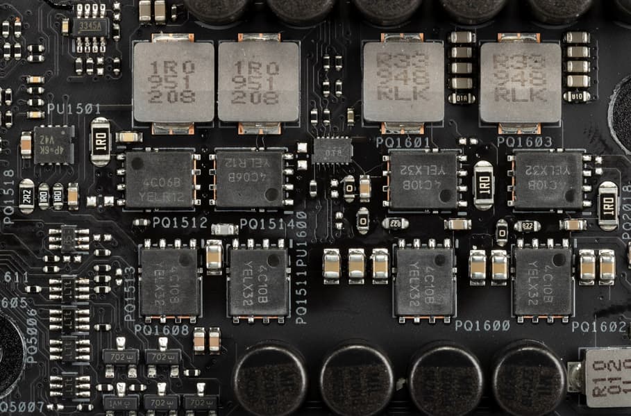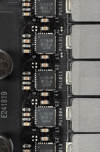 Каждый канал фазы имеет суперферритовую катушку и SIC639 MOSFET от Vishay, рассчитанный на токи до 50 А.