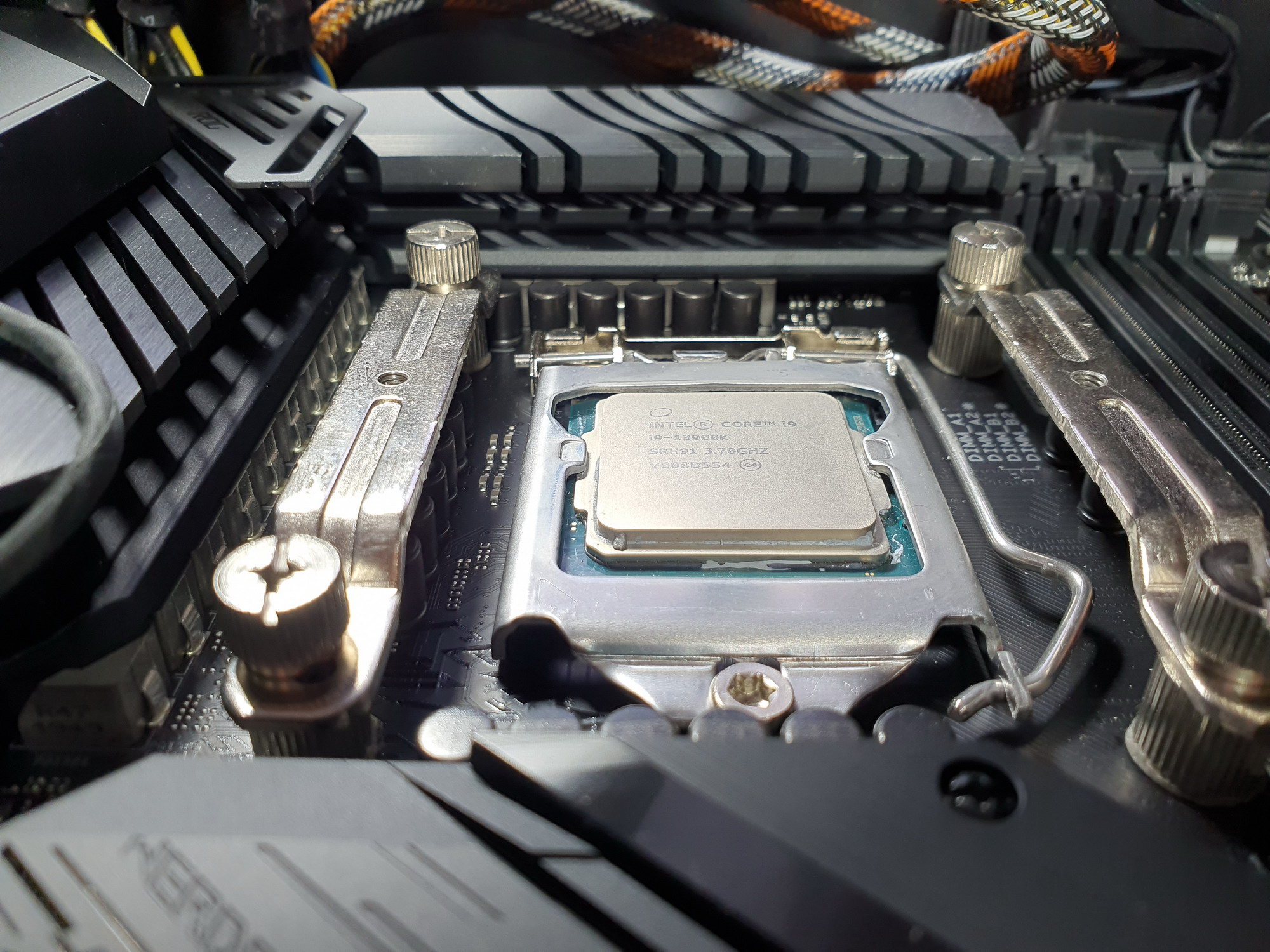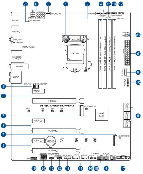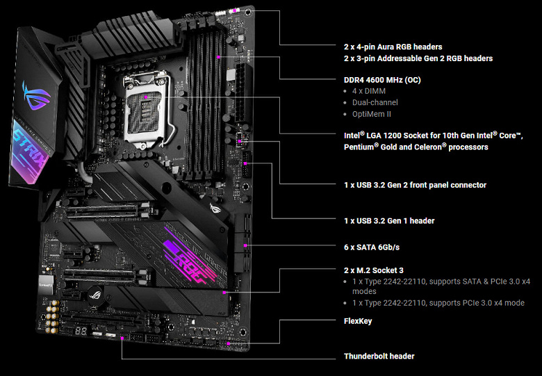 Еще раз надо напомнить, что ROG Strix Z490-E Gaming поддерживает процессоры Intel Core 10-го поколения, выполненные под разъем (сокет) LGA1200. Система крепления систем охлаждения для CPU точно такая же, как и для LGA1151 (прежние кулеры подойдут).