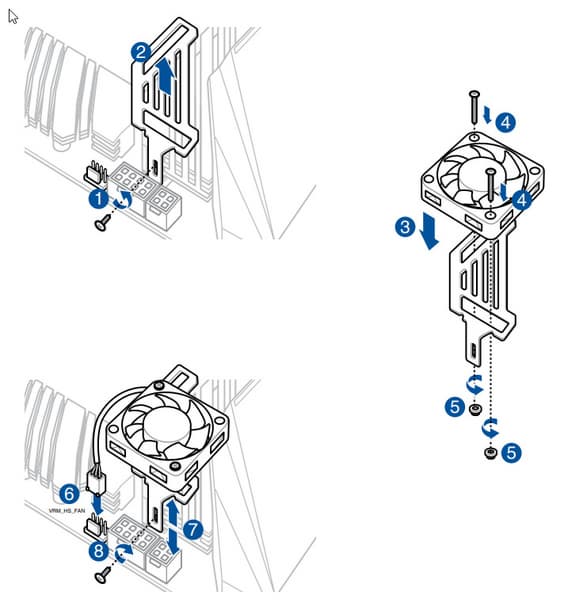 Если любителям разгона чрезмерный нагрев VRM (при условии пассивного охлаждения) станет помехой, то в комплекте поставки материнской платы есть маленький вентилятор с крепежом для монтажа над основным радиатором VRM.