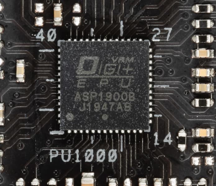 Традиционно для ROG используются цифровые контроллеры серии Digi+ EPU. В данном случае это ASP1900B (этот контроллер рассчитан максимум на 8 фаз).