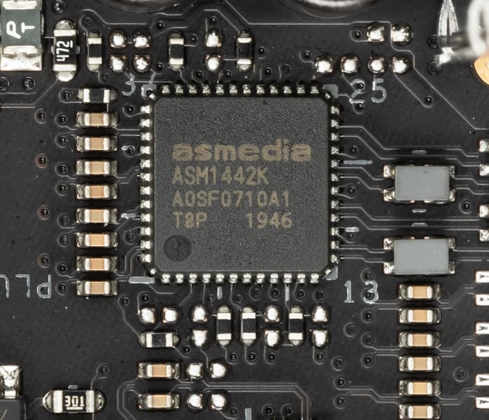 Также необходимо переключение слотов M2 и портов SATA, для этих целей используется мультиплексоры также ASM1480 от ASMedia.