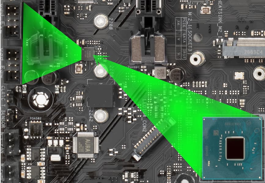 Контроль по синхронизации работы подсветки RGB возложен на чип Aura 50QА0 (неизвестно, как оригинально назывался чип и кто его производитель).