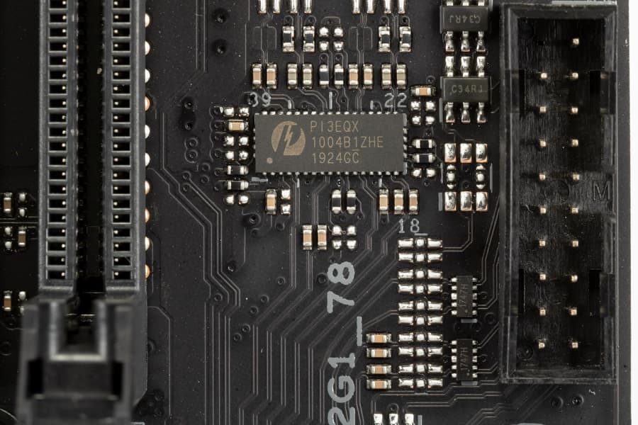 Итак, кроме USB-портов, к которым мы подойдем позже, чипсет Z490 обладает 24 PCIe линиями. Считаем, сколько линий уходит на поддержку (связь) с тем или иным элементом (надо учитывать, что из-за дефицита PCIe линий некоторые элементы периферии делят их, и потому использовать одновременно нельзя: для этих целей у материнской платы существует большое количество мультиплексоров):