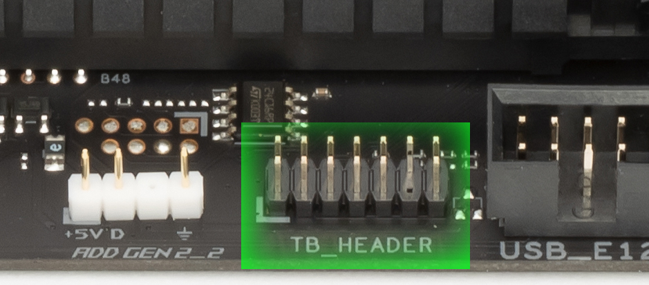 Материнская плата поддерживает платы расширения Thunderbolt 3, для подключения которых имеется отдельный разъем.