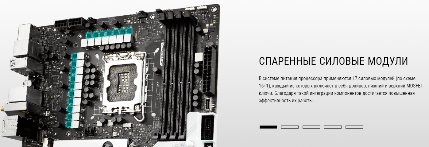 | Слоты расширения | 1 × PCIe 5.0 x16 (режим x16) 1 × PCIe 3.0 x16 (режим x4, x4/x4) 1 × PCIe 3.0 x1 |