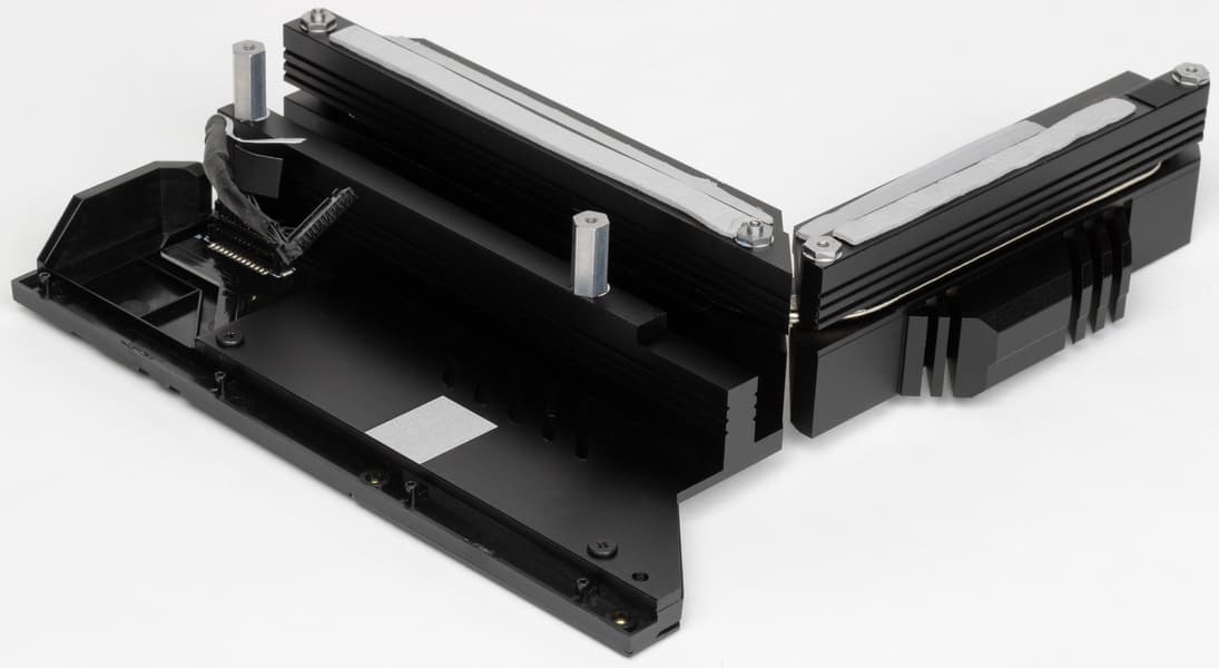Слот M.2_1 кроме верхнего радиатора еще имеет тонкий радиатор и термопрокладку для охлаждения оборотной стороны модуля.