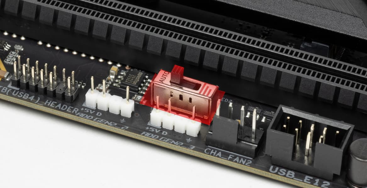 Как видим, перераспределение линий PCIe 5.0 между слотами у этой материнки имеется, поэтому востребованы мультиплексоры Lerain.