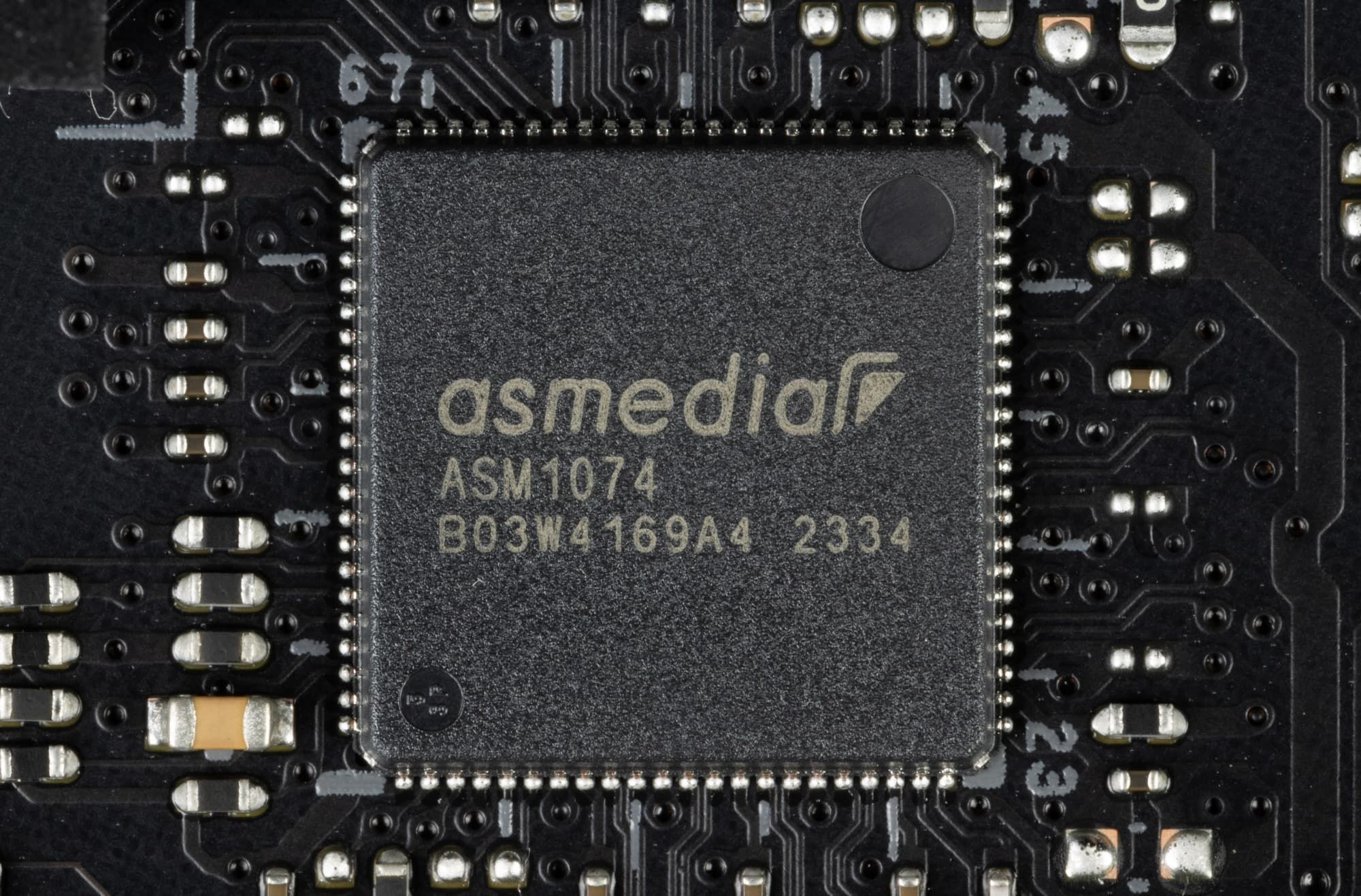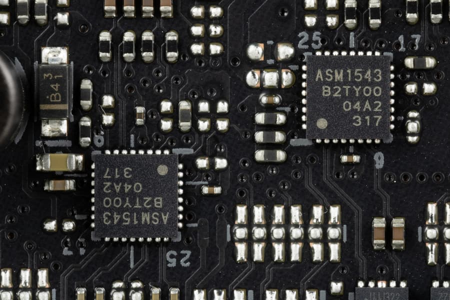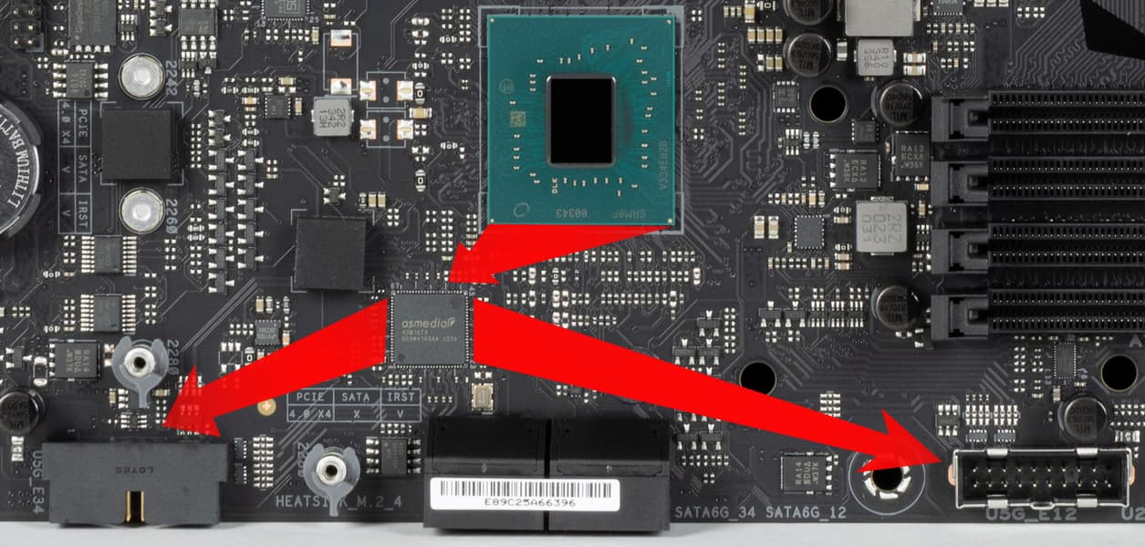- 4 порта USB 3.2 Gen1: все реализованы через контроллер ASMedia ASM1074 (на него потрачена 1 линия USB 3.2 Gen1 от Z790) и представлены 2 внутренними разъемами на материнской плате (каждый на 2 порта);